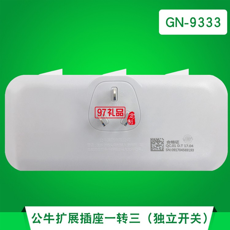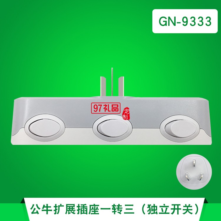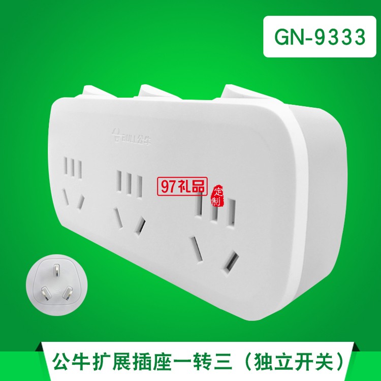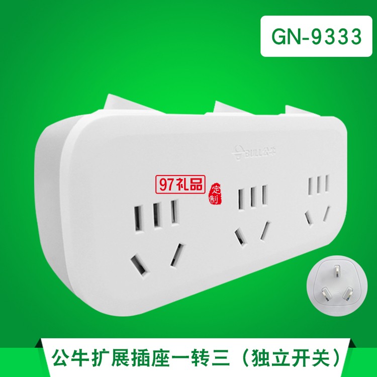 公牛插座GN-9333 排插轉換器帶獨立開關一轉多拖三定制公司廣告禮品