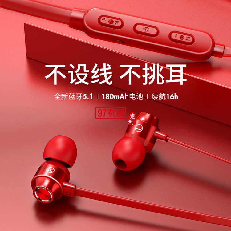 頸掛式藍牙5.1入耳式金屬耳麥 無線運動耳機