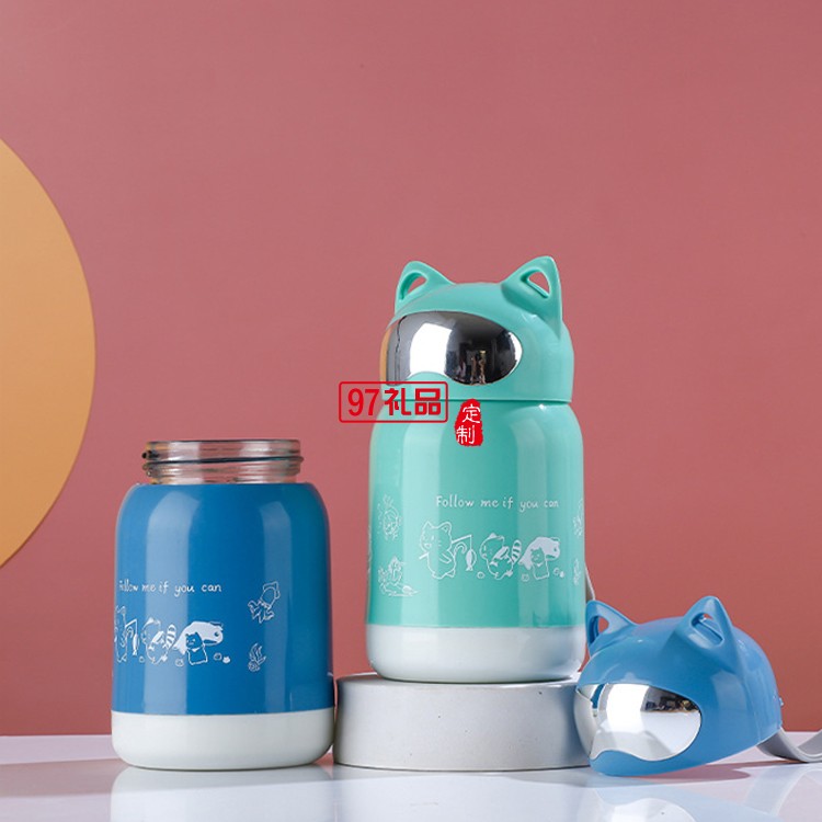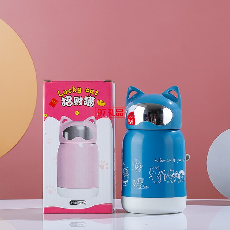 創意招財貓卡通水杯玻璃水杯地推小禮品杯雙層廣告玻璃杯