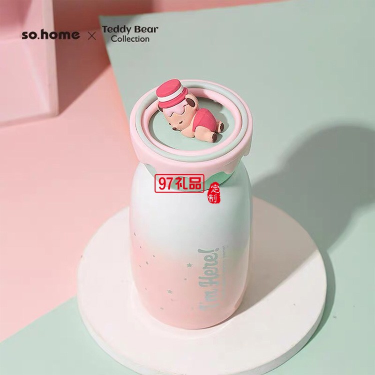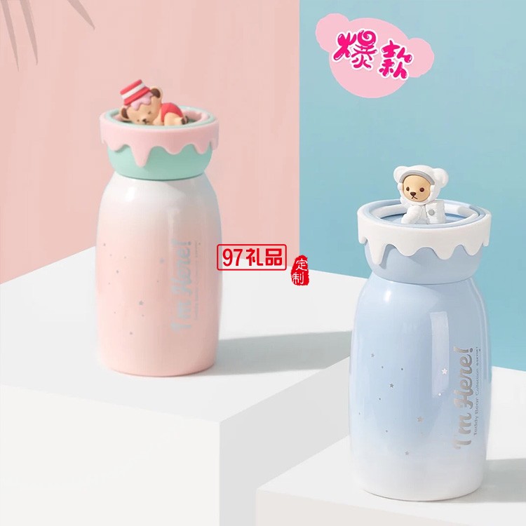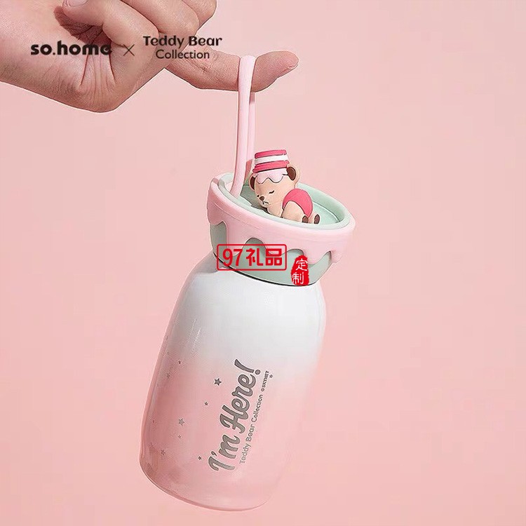 卡通可愛(ài)泰迪珍藏水杯不銹鋼咖啡杯隔熱保溫杯禮品杯子定制