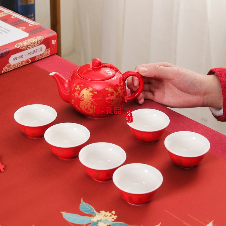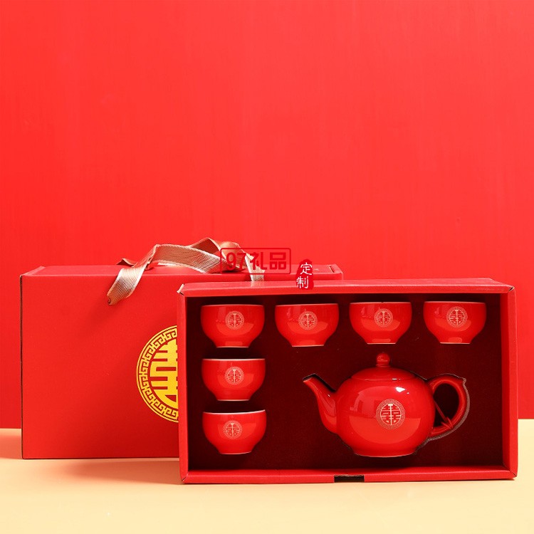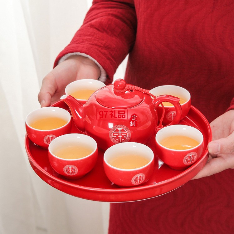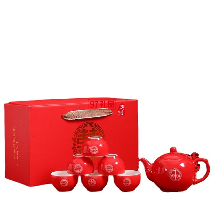 雙喜茶壺紅色敬茶杯中式新婚禮物禮品禮盒婚慶用品陶瓷茶具套裝