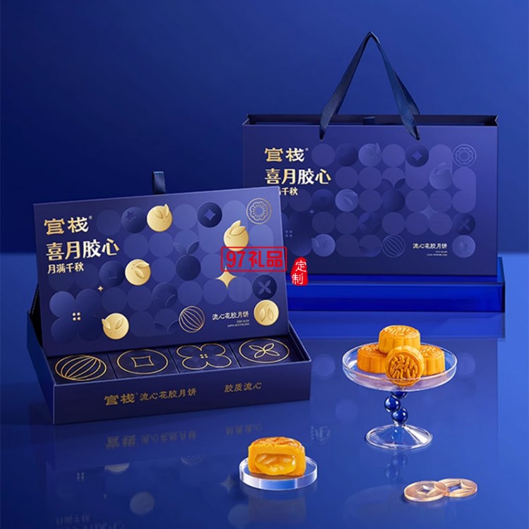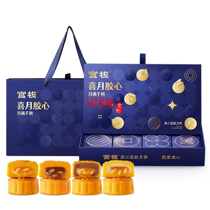 官棧月餅禮盒廣式黑松露流心奶黃花膠月餅中秋節公司