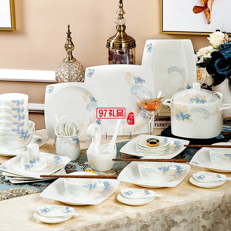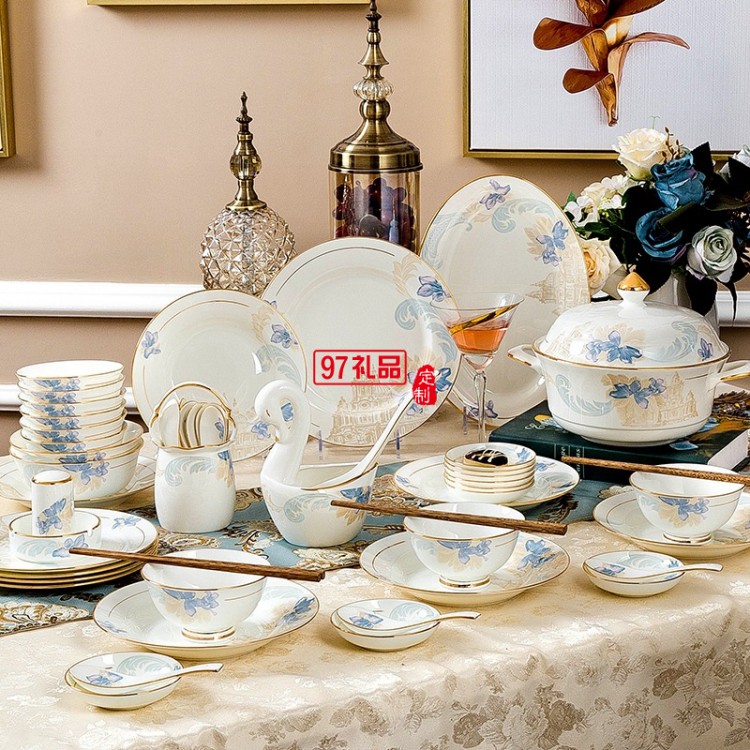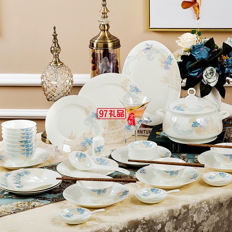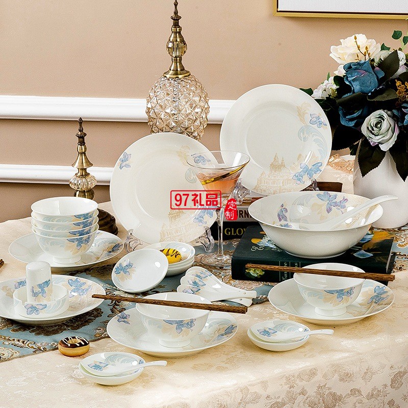 景德鎮(zhèn)陶瓷餐具工廠批發(fā)骨瓷碗盤(pán)碟套裝家用禮品LOGO定制餐具套裝