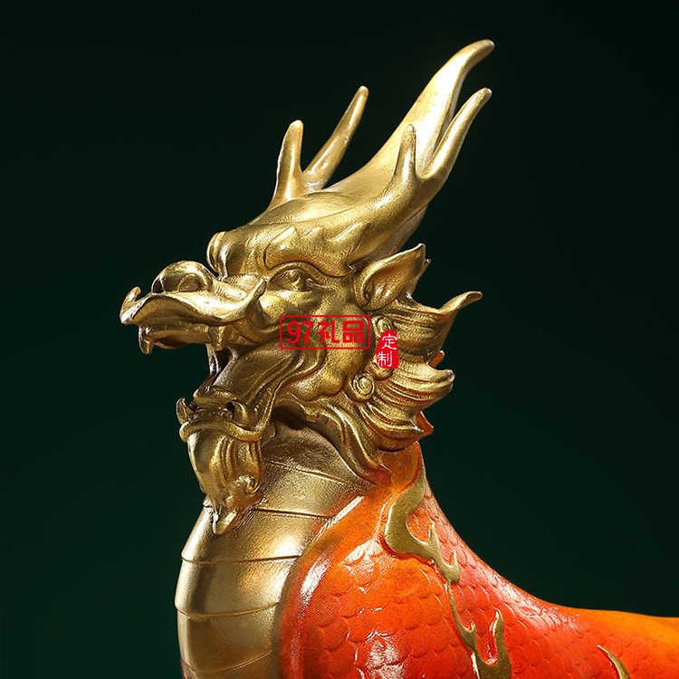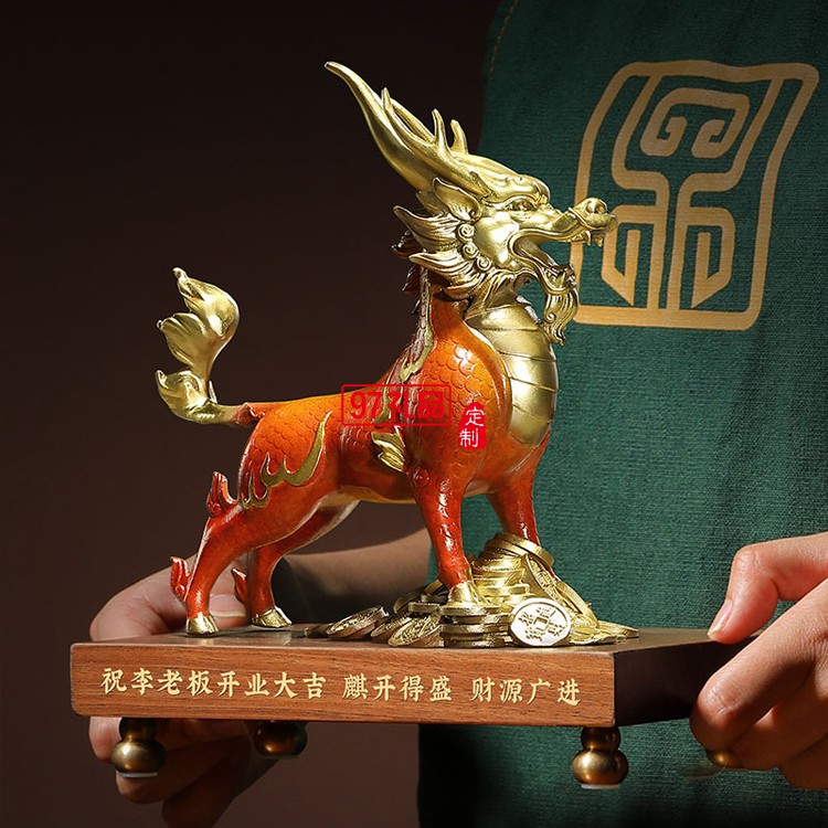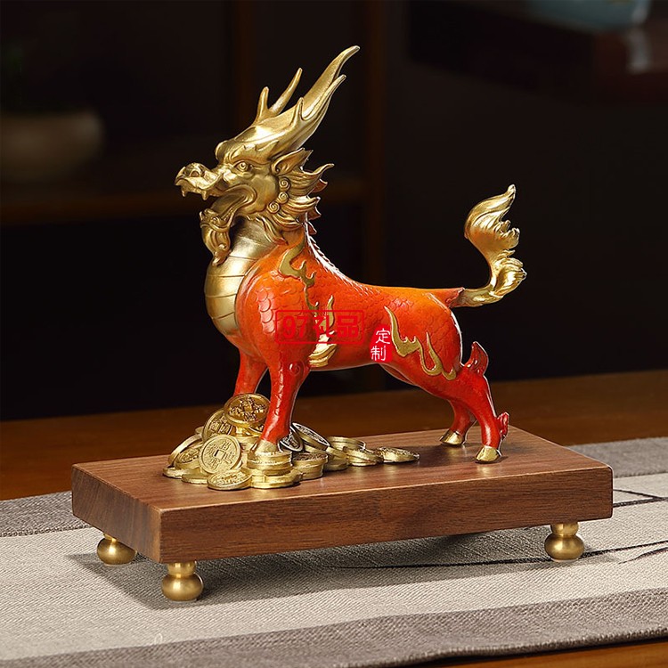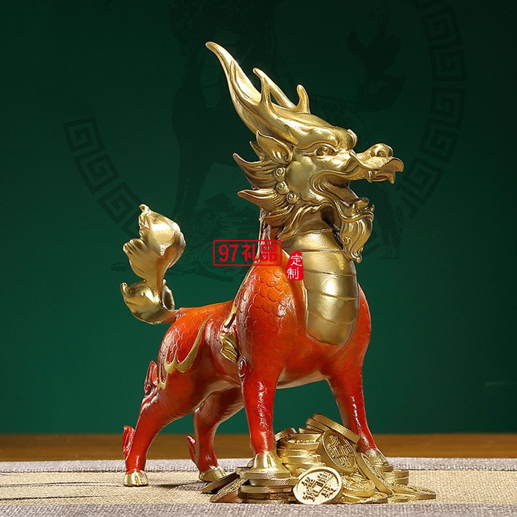 彩銅瑞獸麒麟純銅一對辦公室客廳擺件