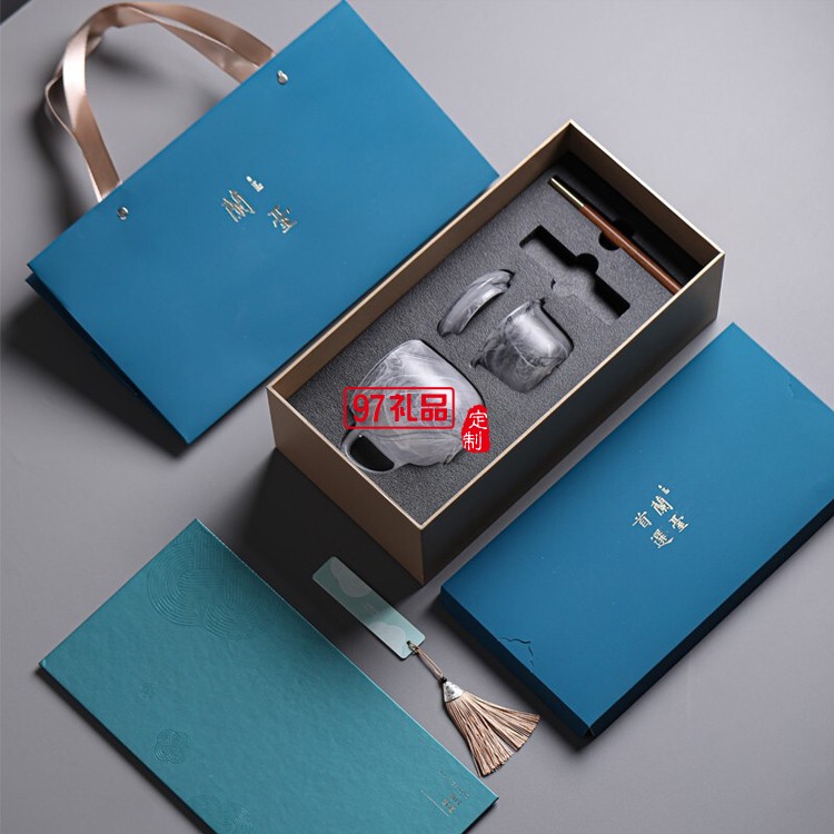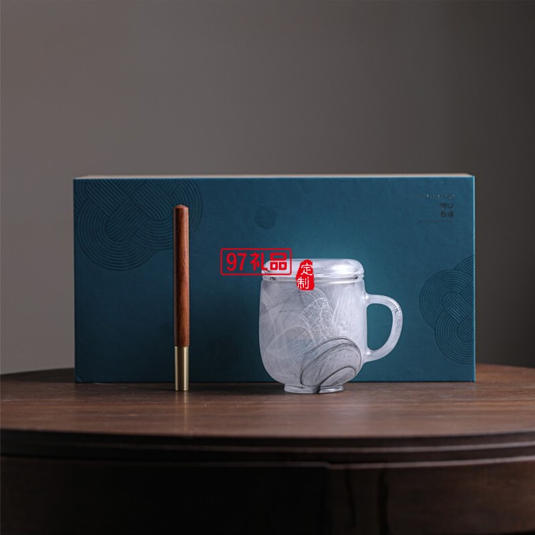 高端商務(wù)禮品圓融琉璃杯書簽紅木筆套裝