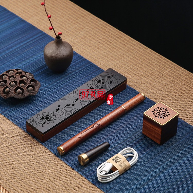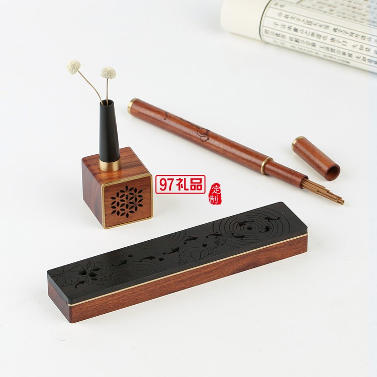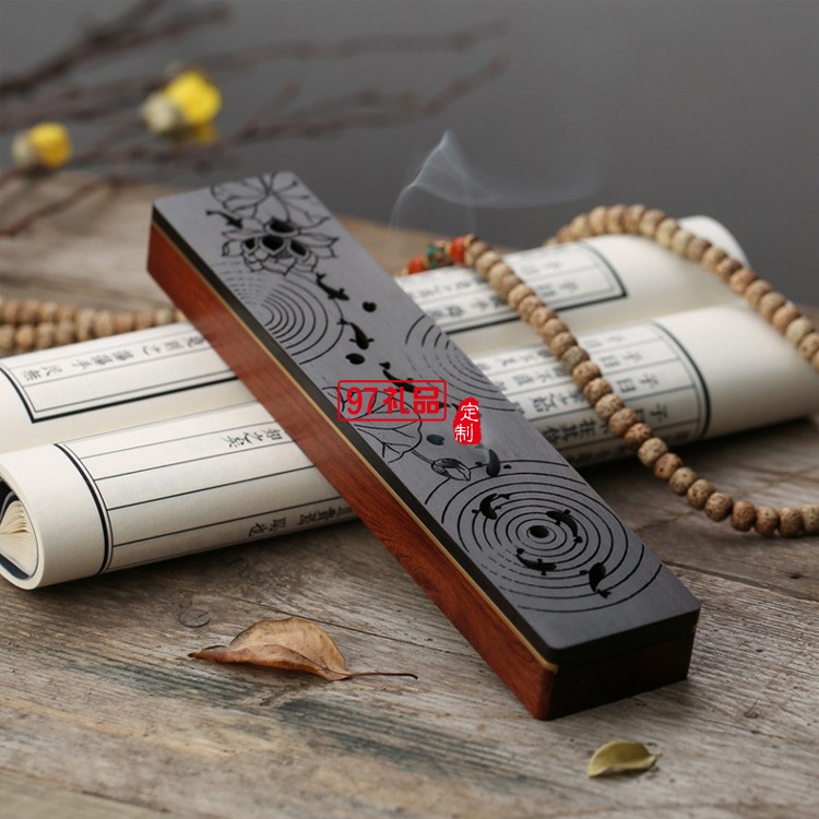 紅木質線香臥香爐 小型銅木音響