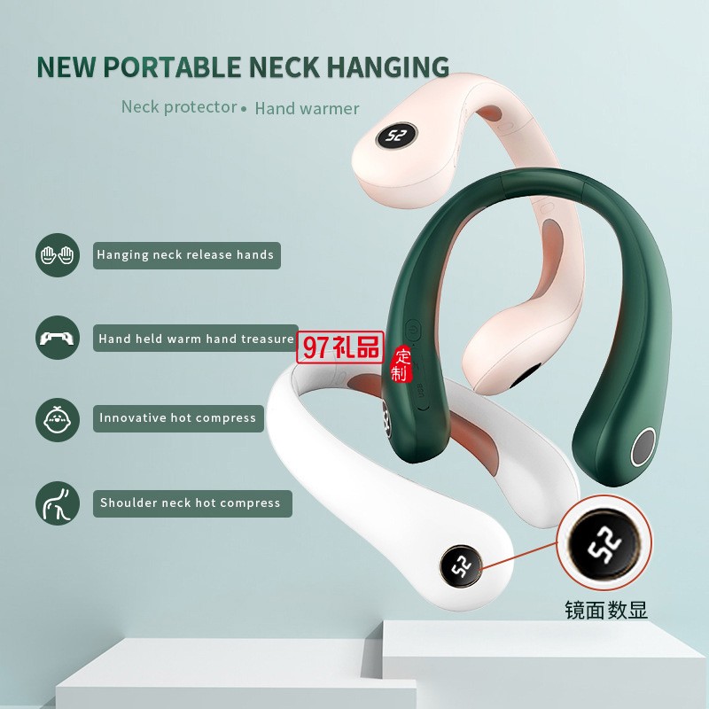 掛脖式暖脖寶熱敷護頸儀便攜數顯充電寶二合一暖手寶可定制logo