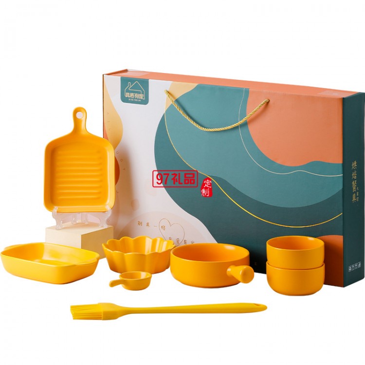 網紅ins大烘焙套裝禮品碗碟套裝陶瓷餐具可愛烤盤禮盒套裝伴手禮