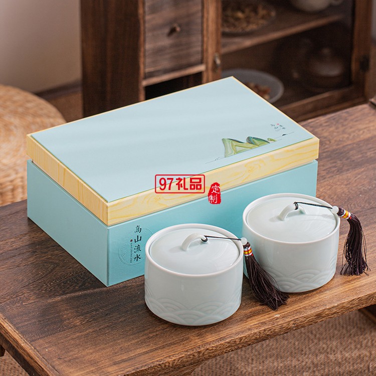 綠茶茶葉包裝盒雙罐陶瓷茶葉