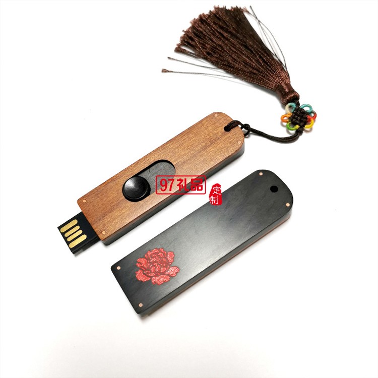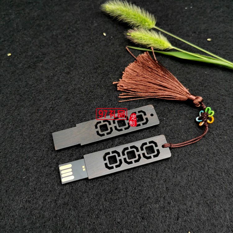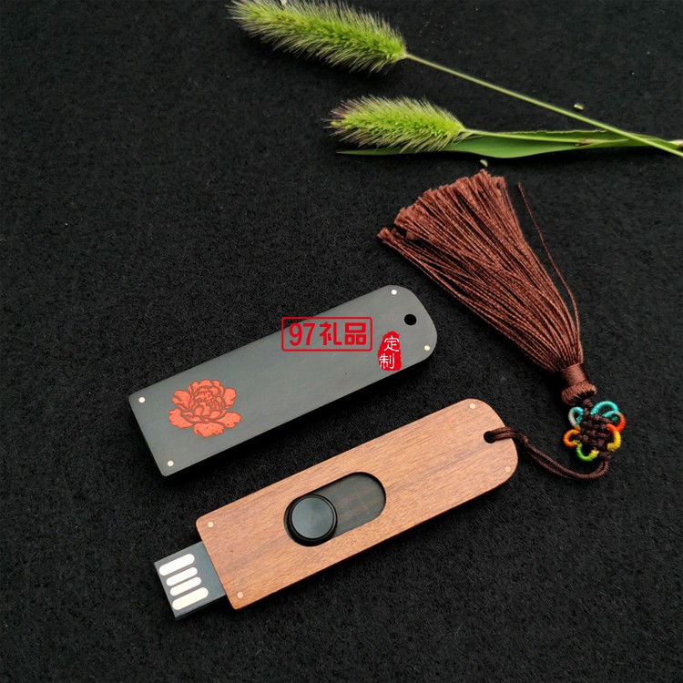 中國(guó)風(fēng)窗花創(chuàng)意U盤 鑲銀檀木推拉