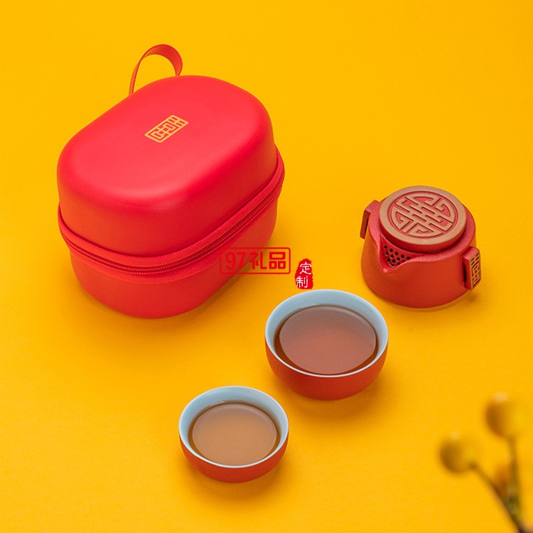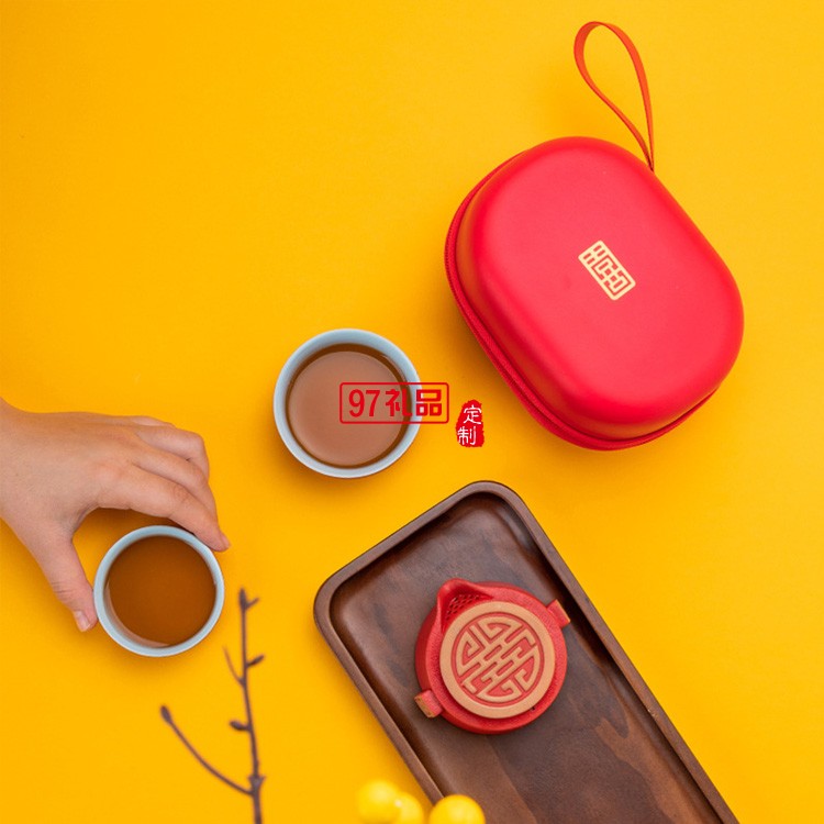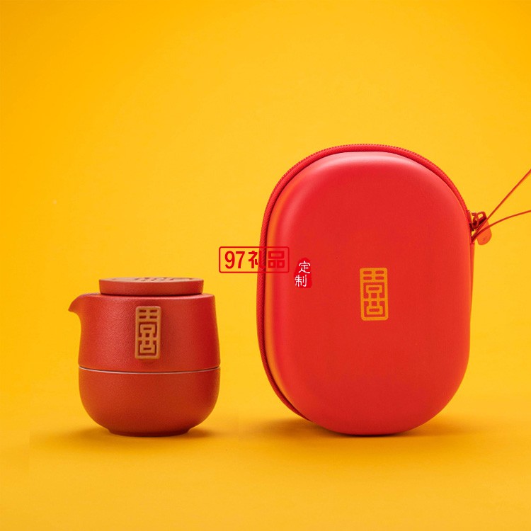 創意喜氣東來快客杯陶瓷茶具便攜式旅行茶具套裝禮品定制商務禮盒