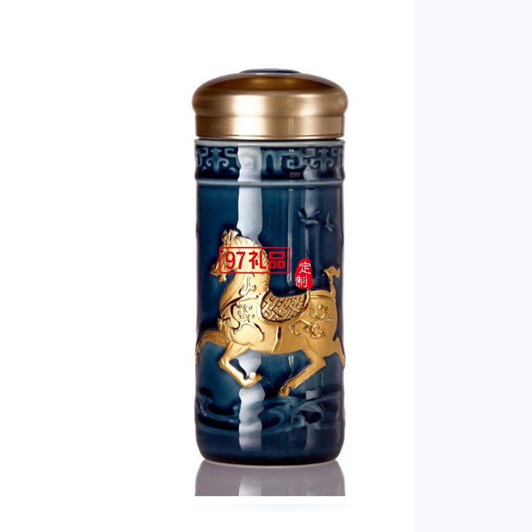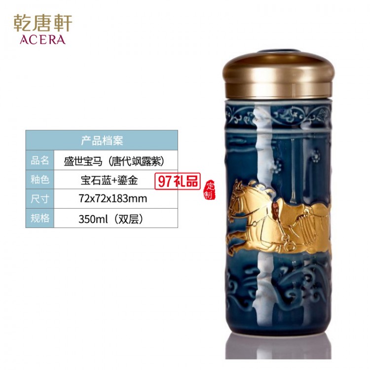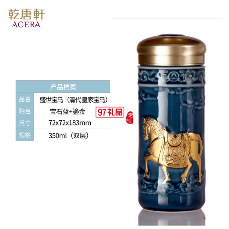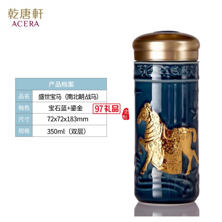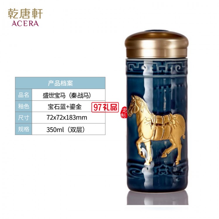 乾唐軒活瓷盛世寶馬隨行杯350lml雙層商務隨手禮高檔禮品杯子定制