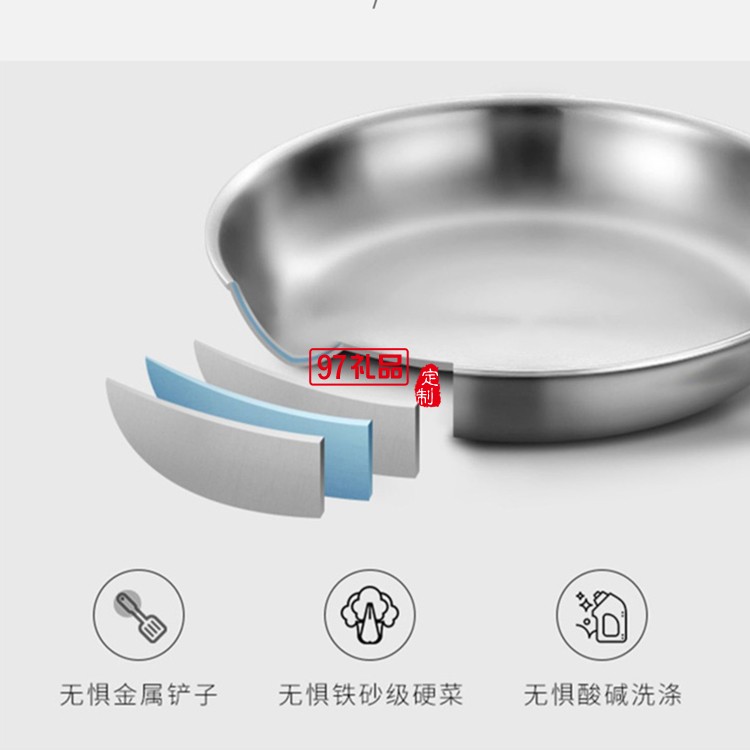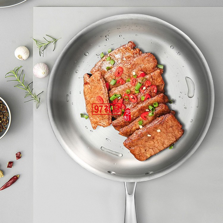 歐美達不銹鋼平底鍋無涂層煎蛋煎餅鍋不粘鍋煎鍋定制公司廣告禮品