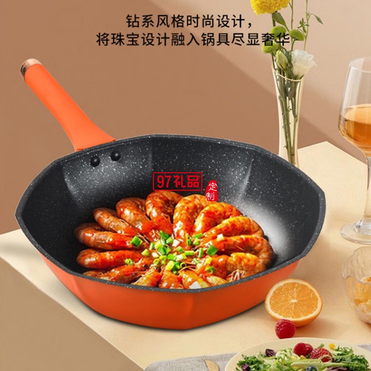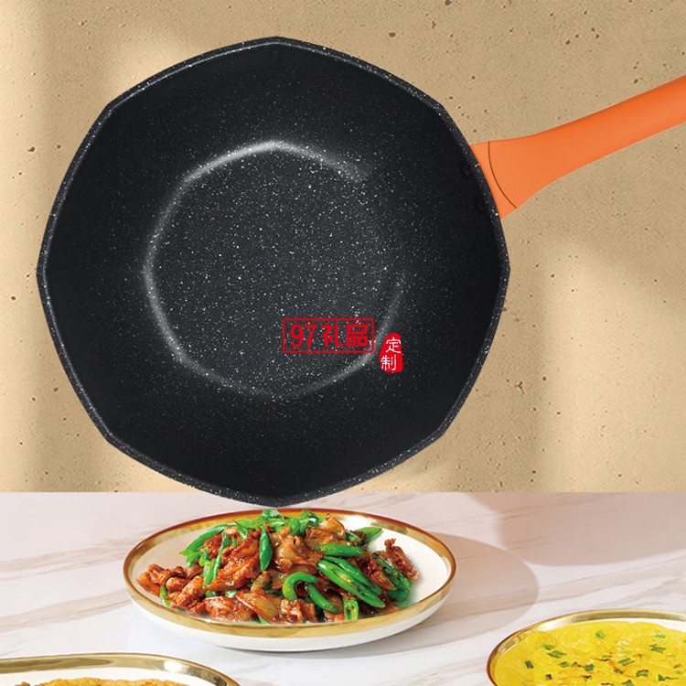 榮事達八角鍋麥飯石炒鍋不粘鍋炒菜鍋定制公司廣告禮品