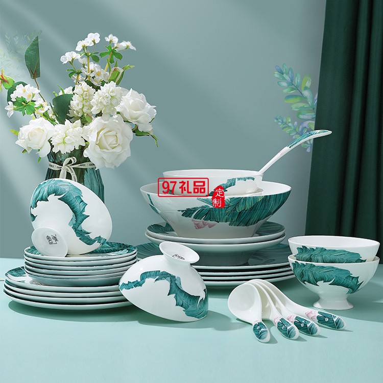 國潮碗碟套裝家用碗盤筷組合個性簡約吃飯碗湯碗餐具套組