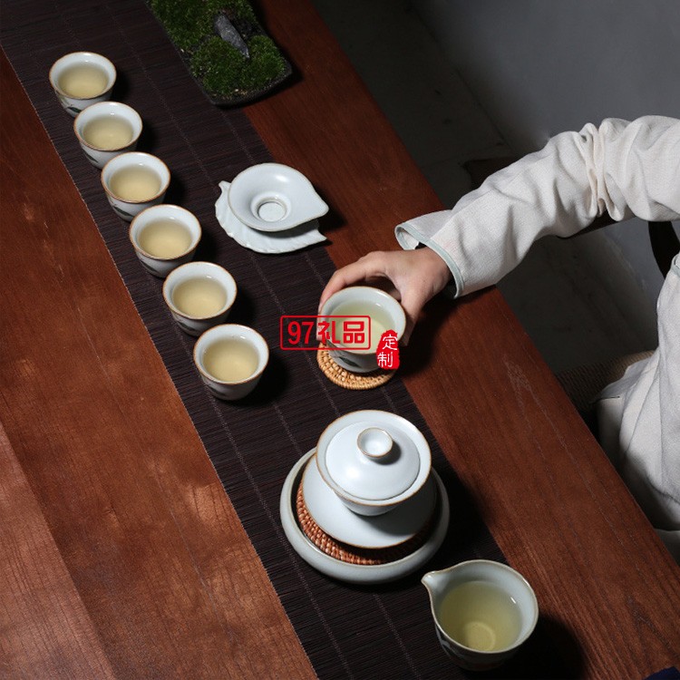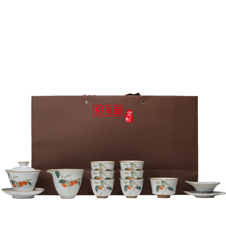 汝窯開片三才蓋碗柿子茶具套裝禮盒裝功夫陶瓷套組