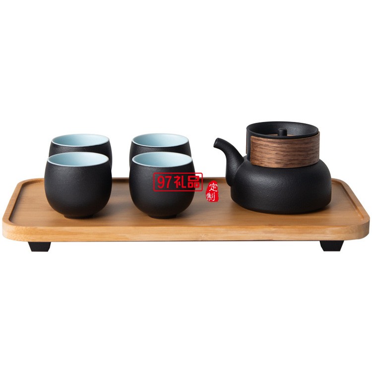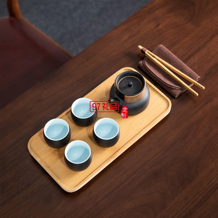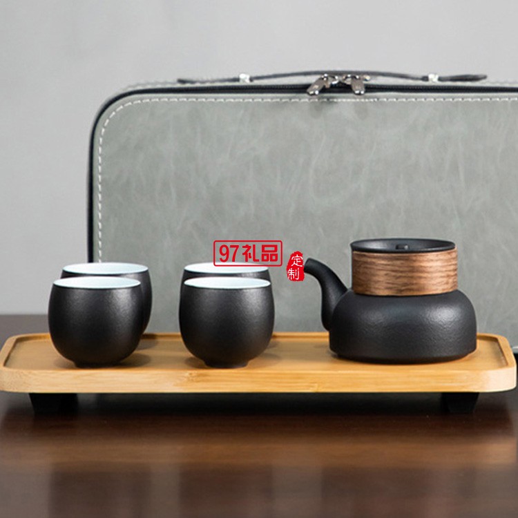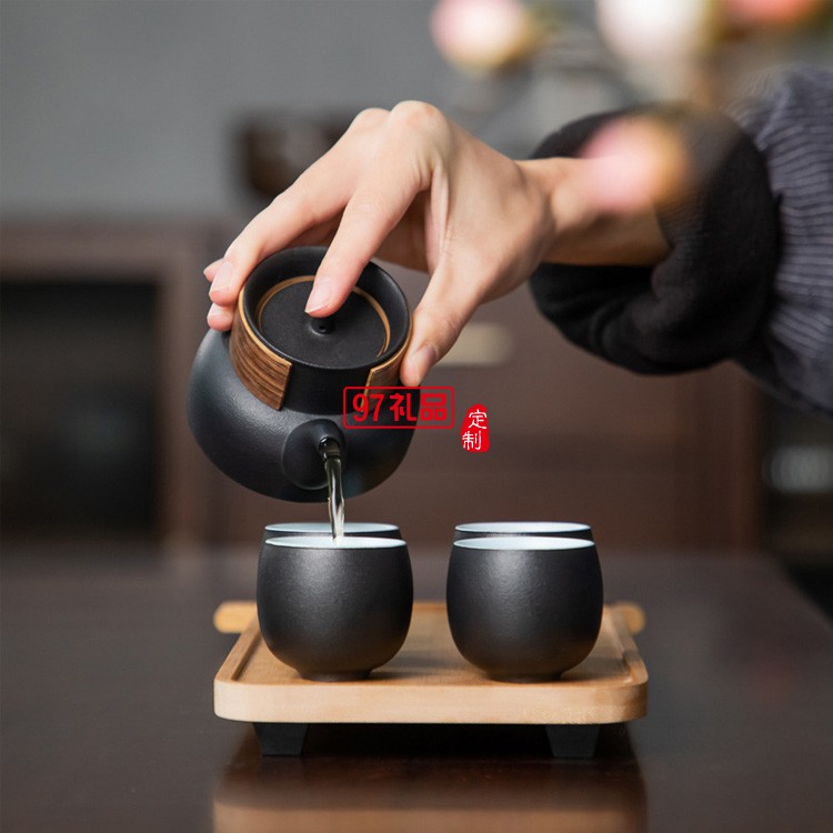 旅行茶具套裝收納便攜包一壺四杯車載戶外隨身4人黑色陶瓷快客杯
