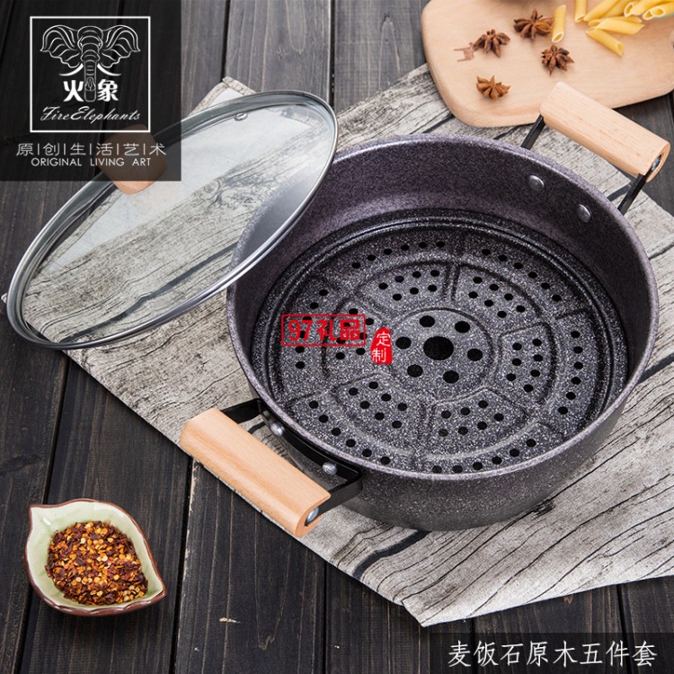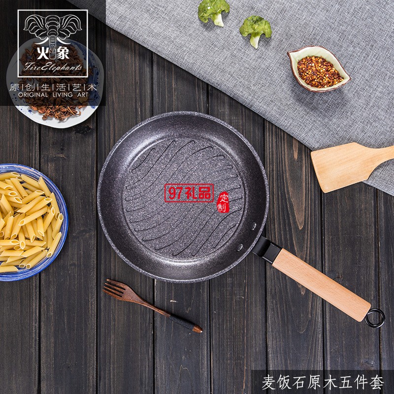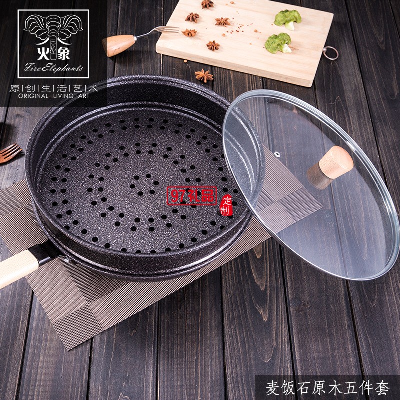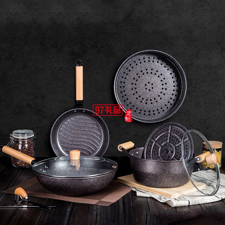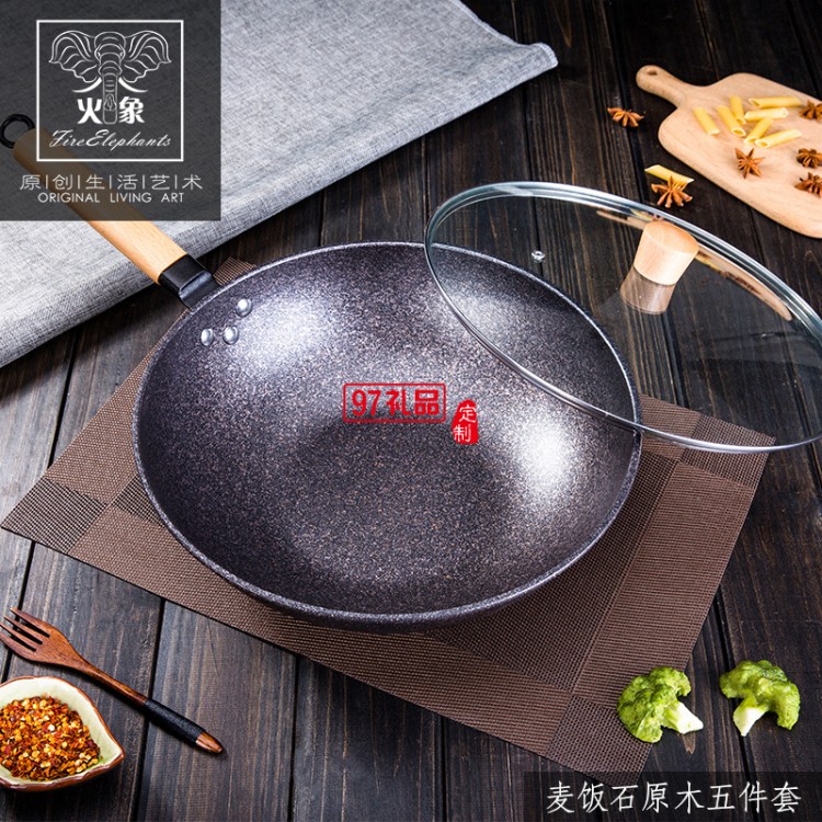 加工定制不沾鍋麥飯石五件套廚房全套鍋具送客戶禮品員工福利