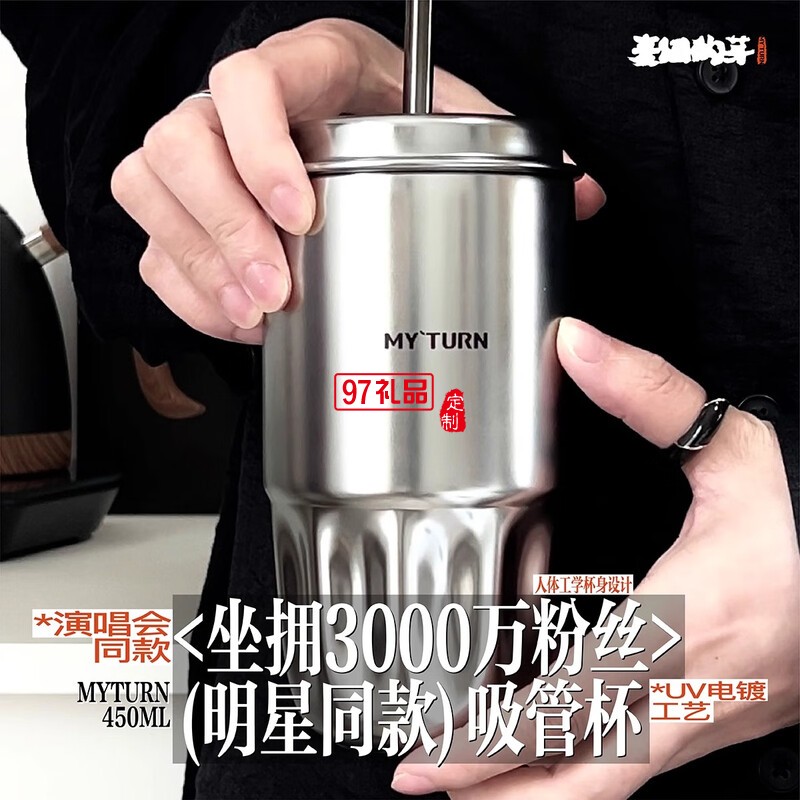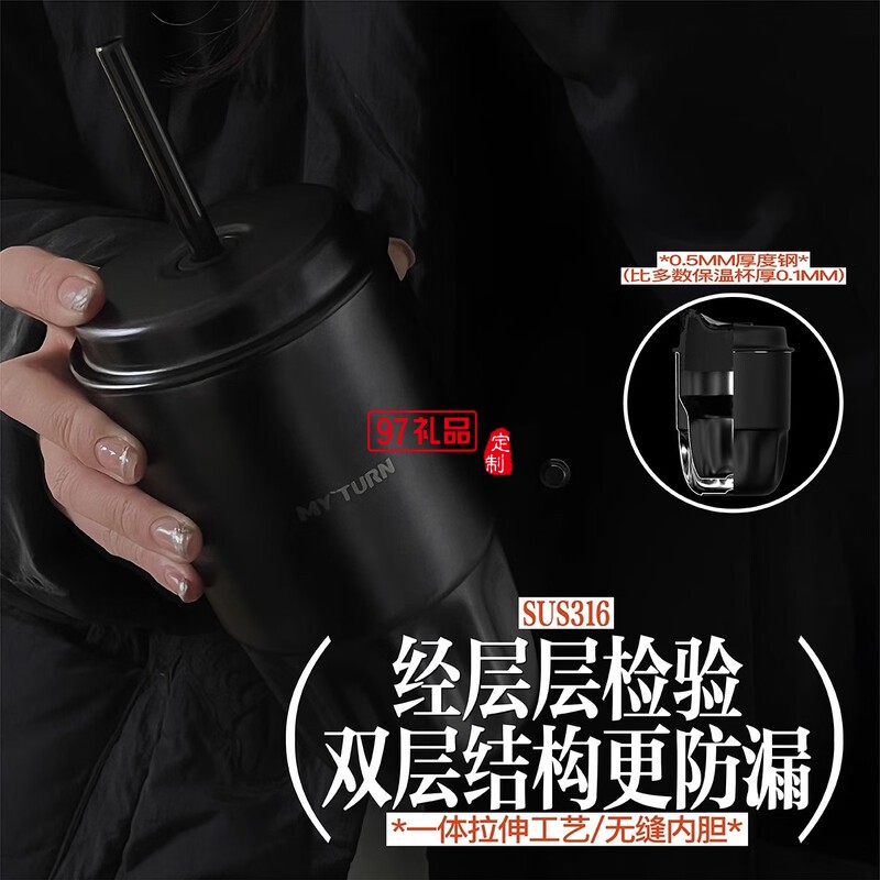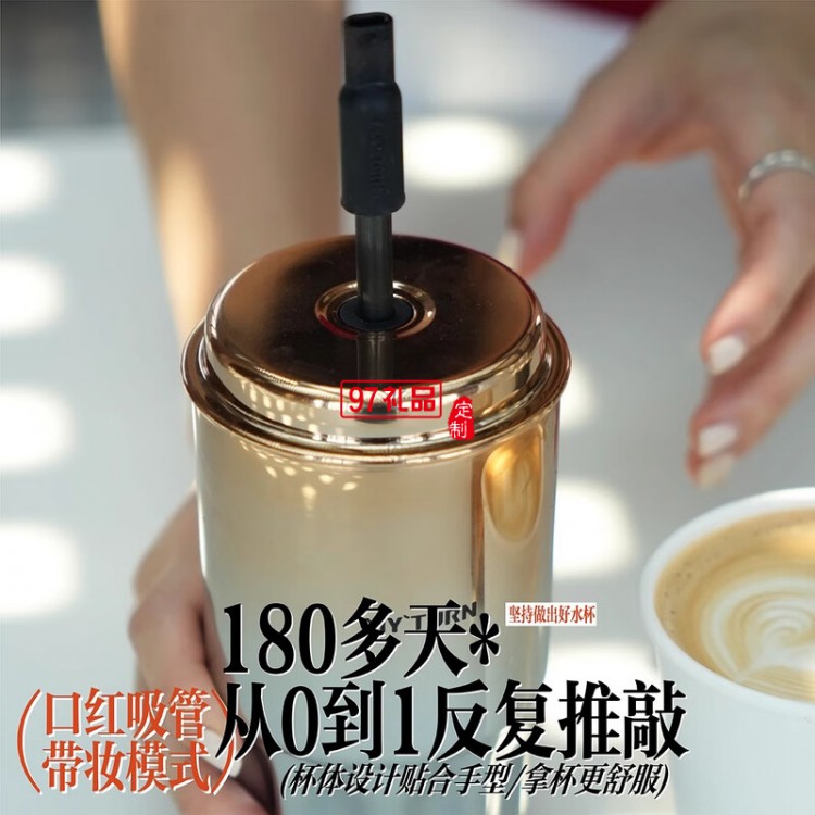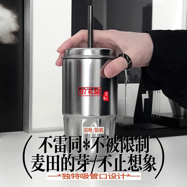MY TURN 麥田的芽吸管咖啡杯男女316不銹鋼個性高顏值保溫杯
