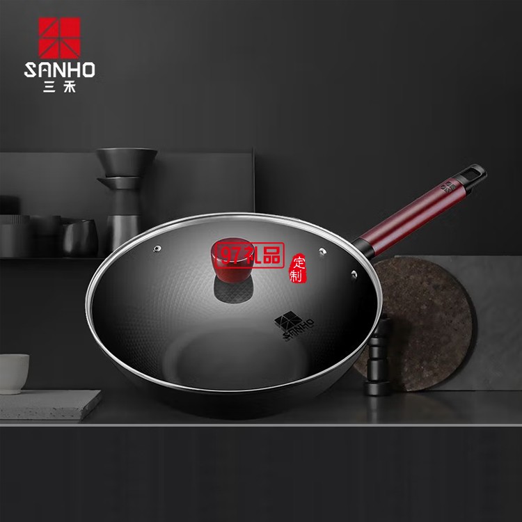 三禾 極鐵炒鍋32CM鐵鍋無涂層炒菜鍋TC32G1定制公司廣告禮品