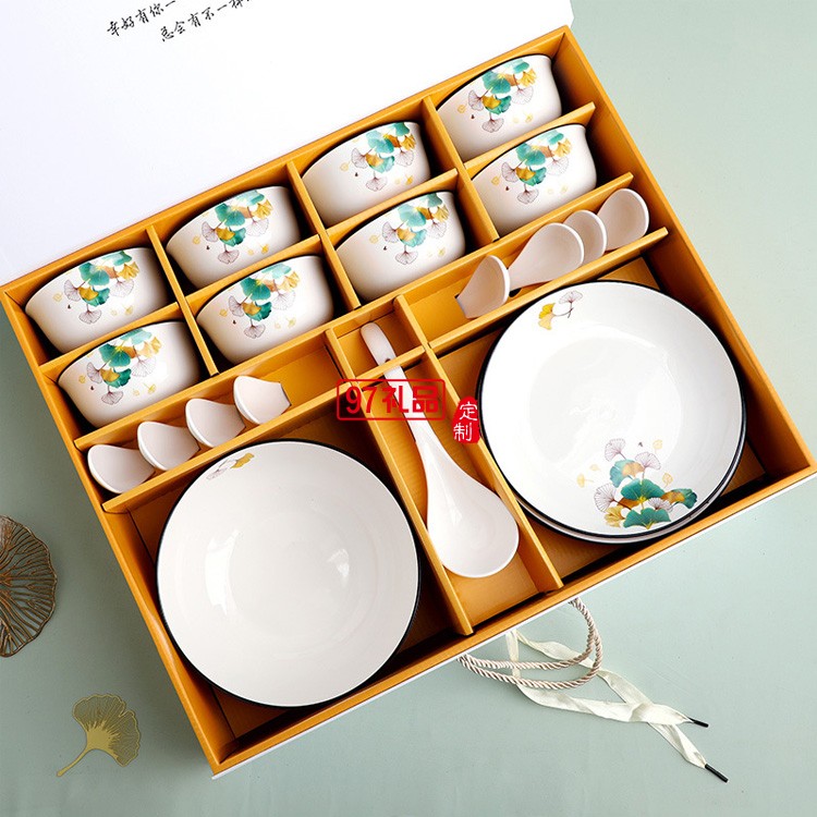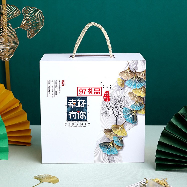 家用碗盤碟陶瓷餐具禮盒裝碗勺套裝公司開業活動喬遷伴手禮可logo