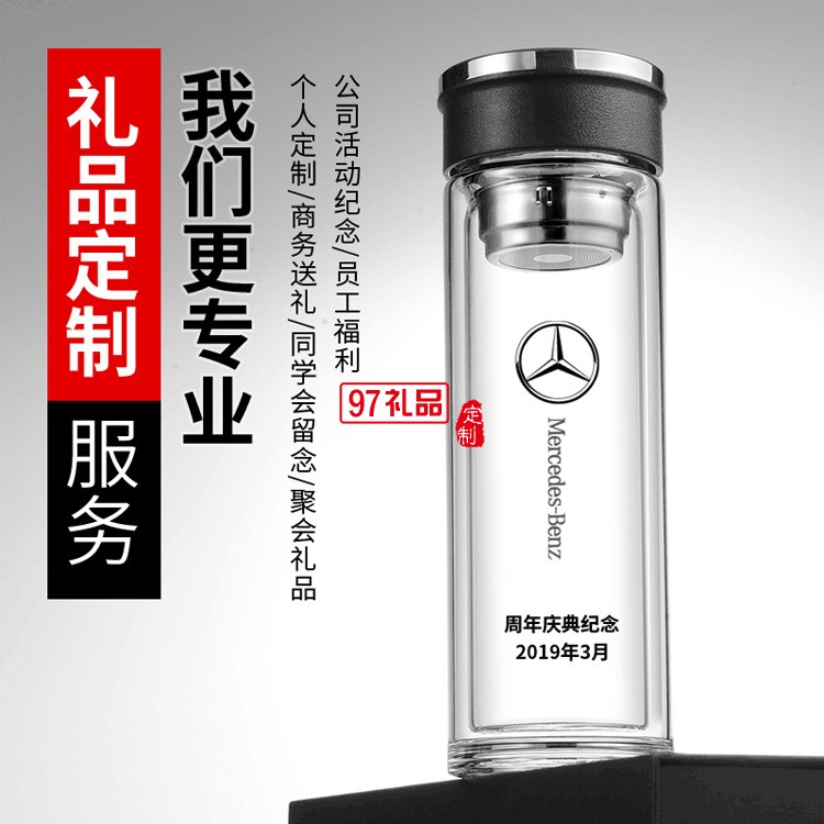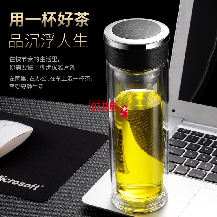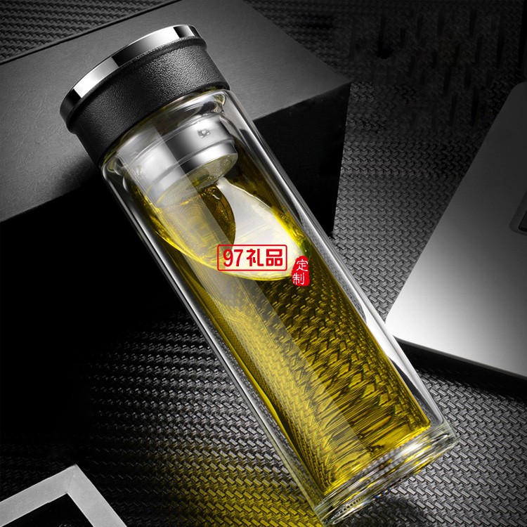 雙層玻璃杯定制廣告促銷禮品高硼硅透明茶杯耐高溫禮品杯子定制