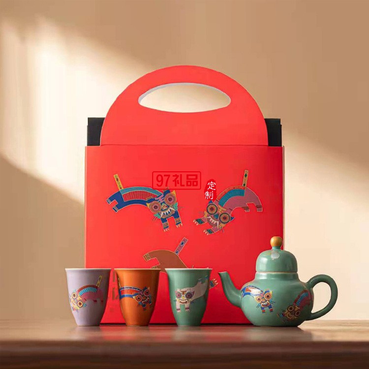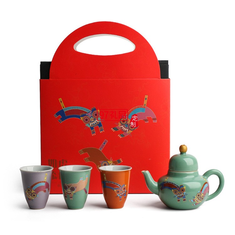 陶瓷茶具三杯茶禮整套壬寅虎年國潮伴手禮茶具禮品禮盒裝