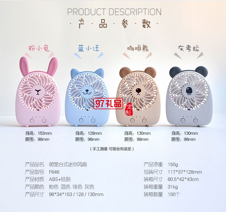 中國工商銀行定制卡通動物可愛充電usb風(fēng)扇