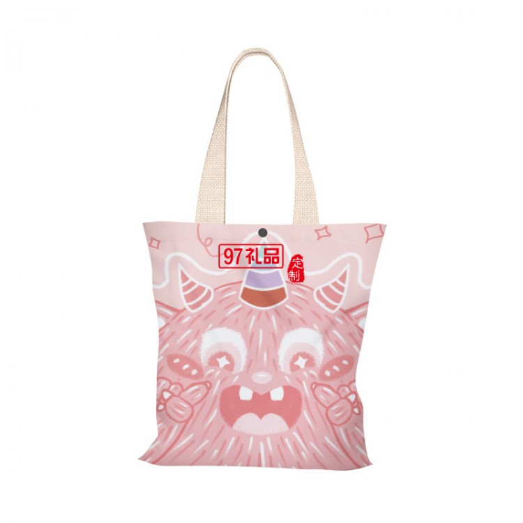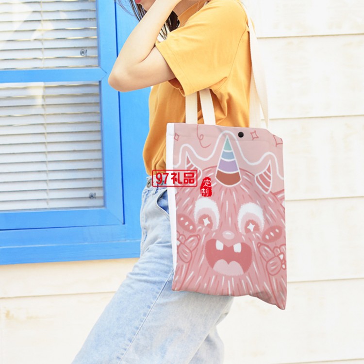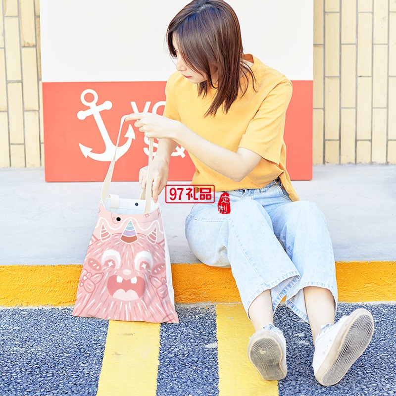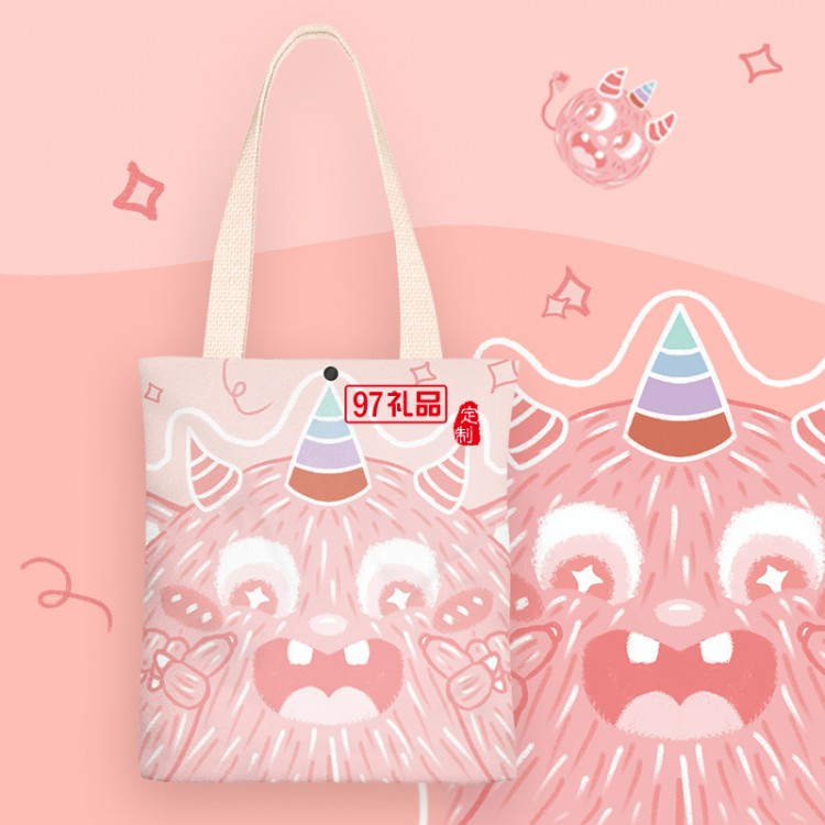 新款粉色小怪獸學生大容量單肩帆布手提袋購物袋定制