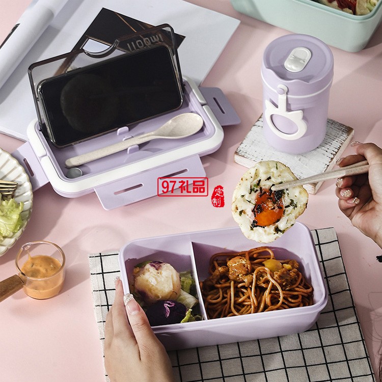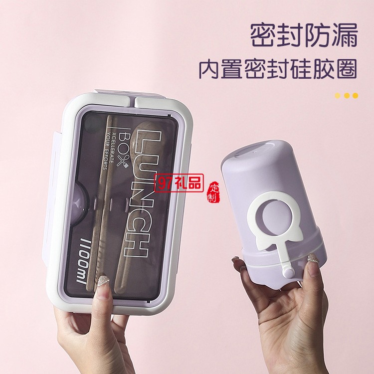 可微波爐塑料分格飯盒午餐盒密封防溢帶飯便當盒湯罐早餐杯套裝