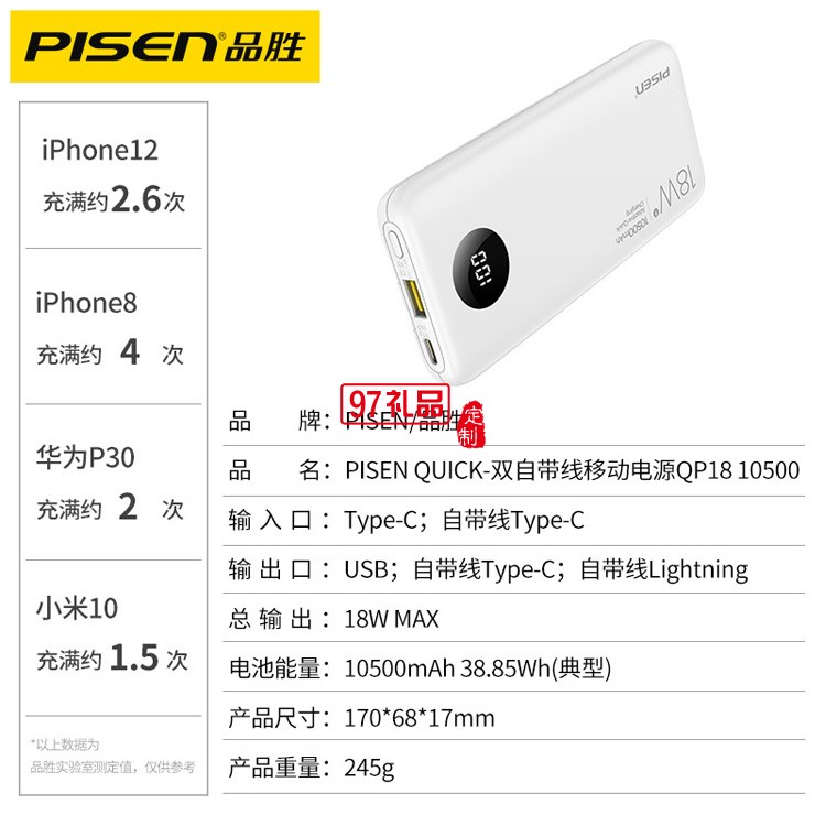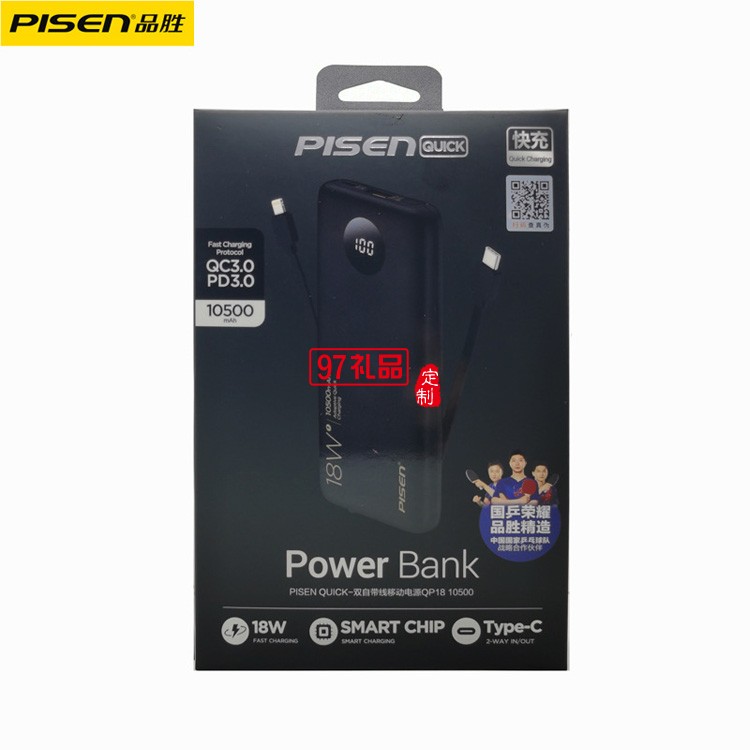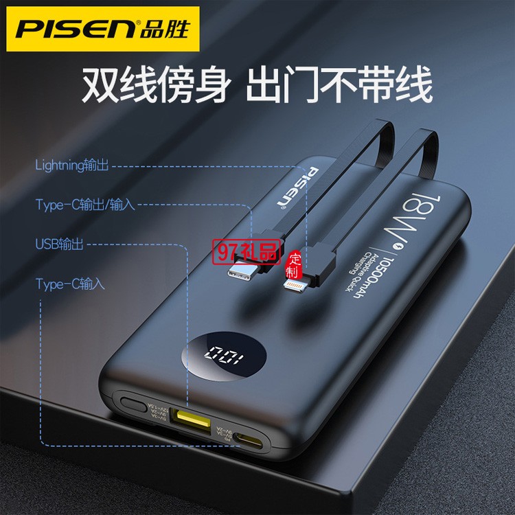 品勝充電寶10500毫安自帶線18W雙向快充PD移動電源帶數(shù)據(jù)線