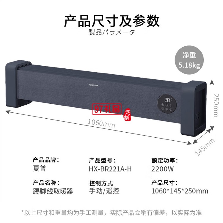 夏普取暖器 踢腳線石墨烯電暖器 HX-BR221A-H定制公司廣告禮品