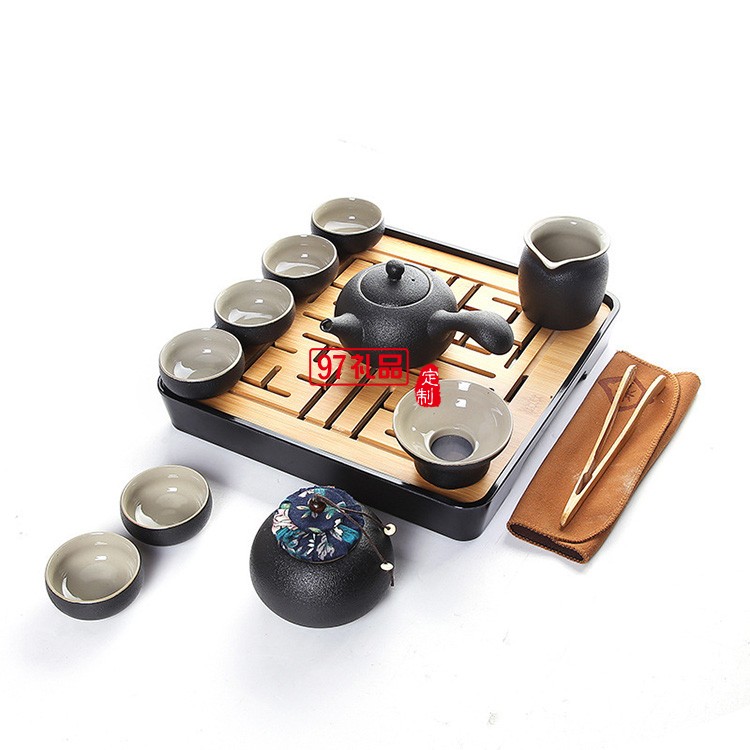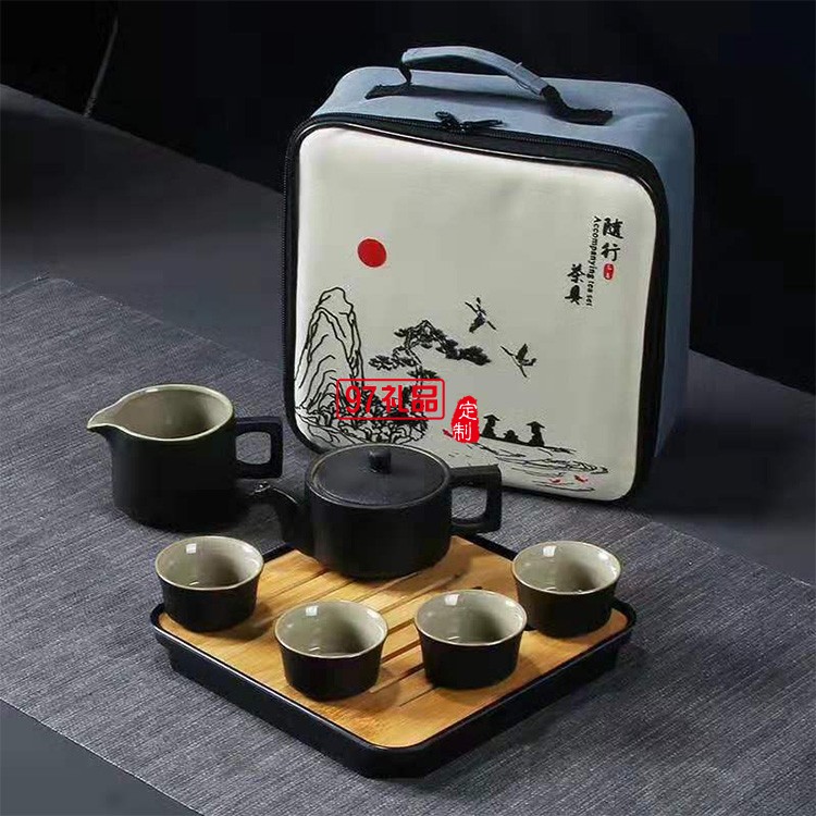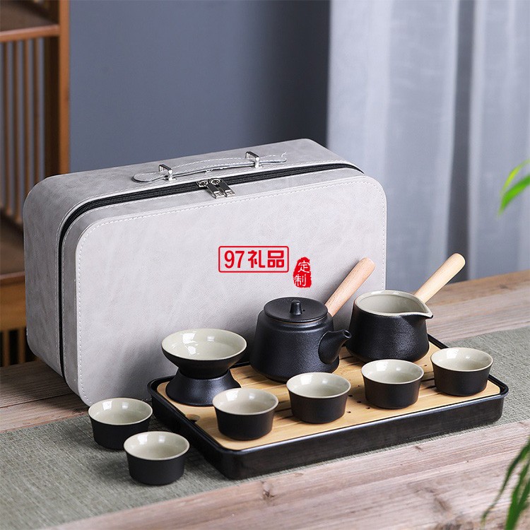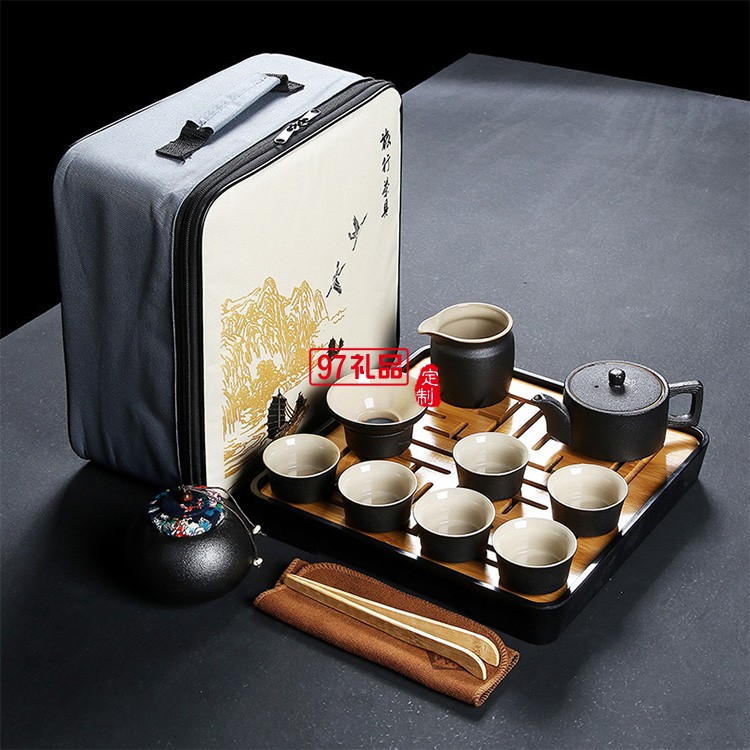 年會喜慶旅行功夫茶具套裝黑陶陶瓷公司商務員工禮品雕刻logo送禮