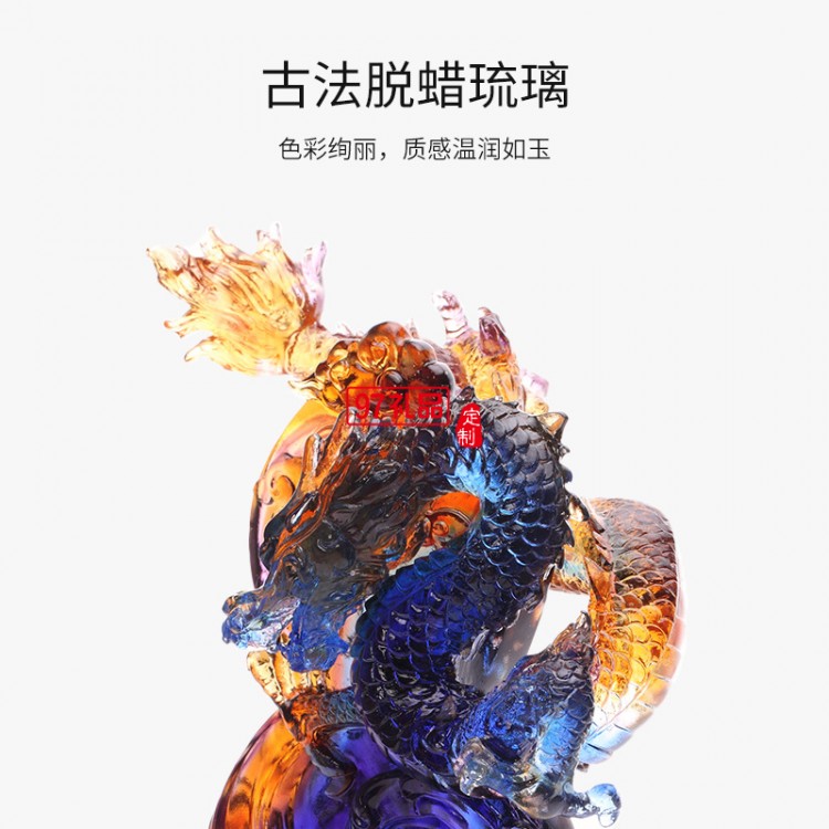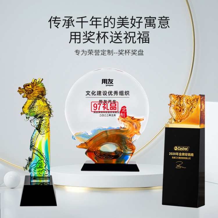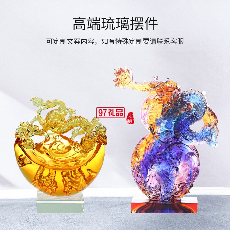 2024年龍年獎杯定制開業(yè)禮物龍年琉璃擺件12生肖龍年水晶獎杯定做