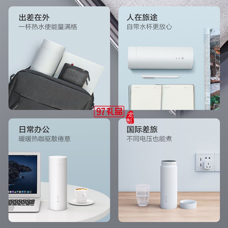 云米旅行電熱杯家用304不銹鋼便攜小型水壺保溫杯燒水壺定制公司廣告禮品