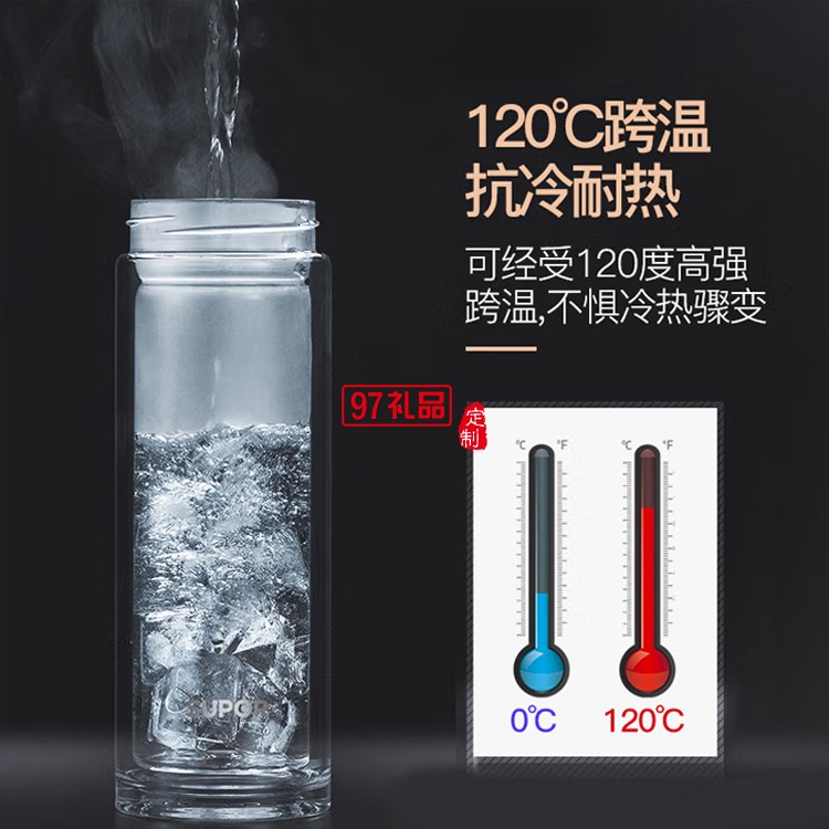 蘇泊爾玻璃杯雙層玻璃水杯泡茶杯KC38CM1定制公司廣告禮品