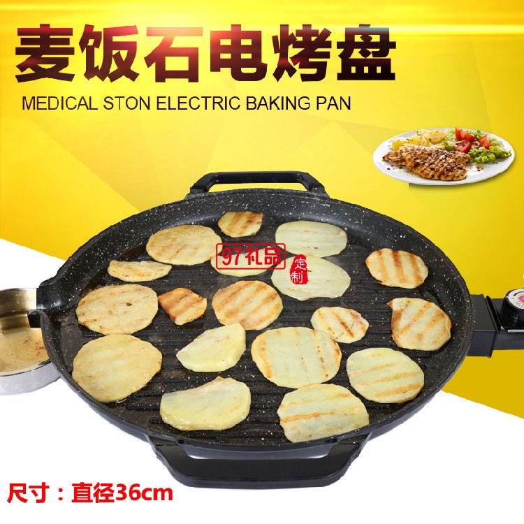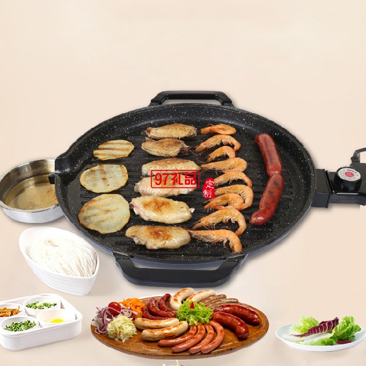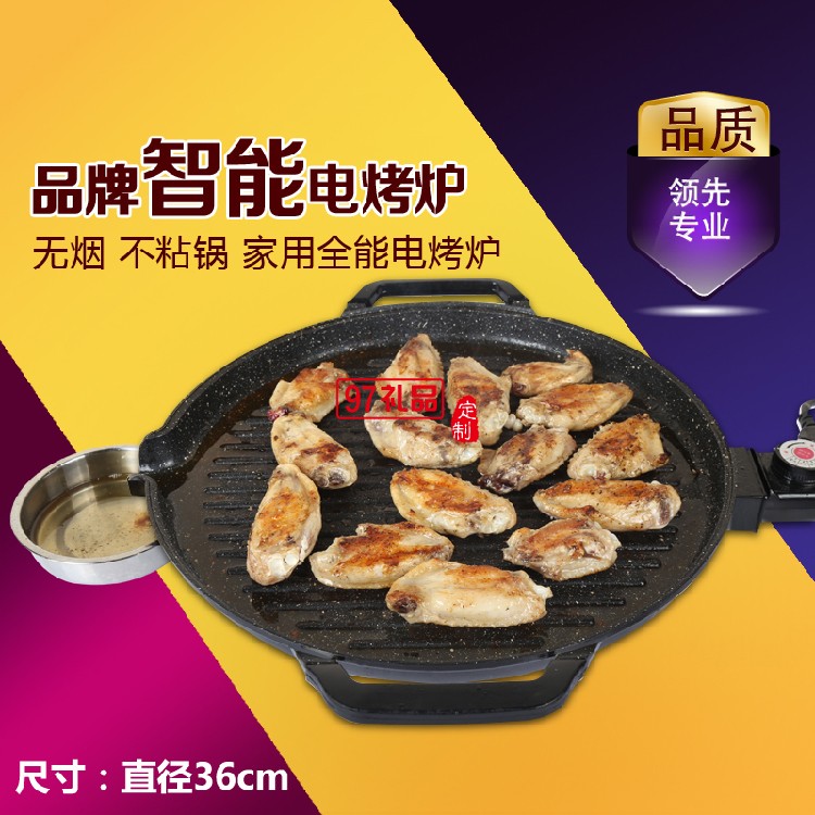 無煙電烤盤麥飯石不粘電烤爐燒烤爐圓形烤肉機(jī)定制公司廣告禮品
