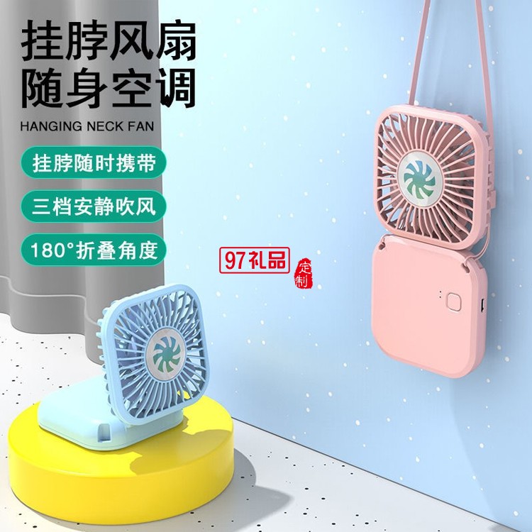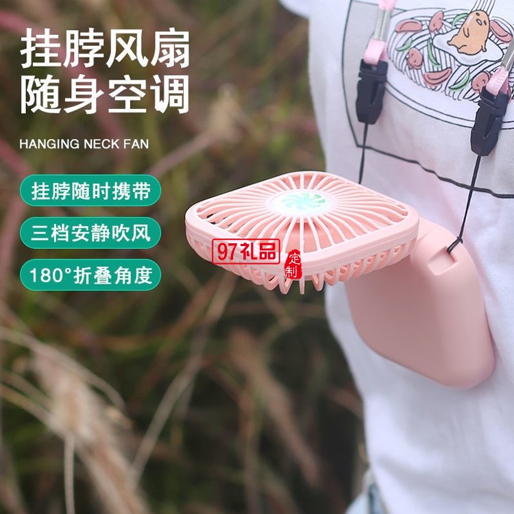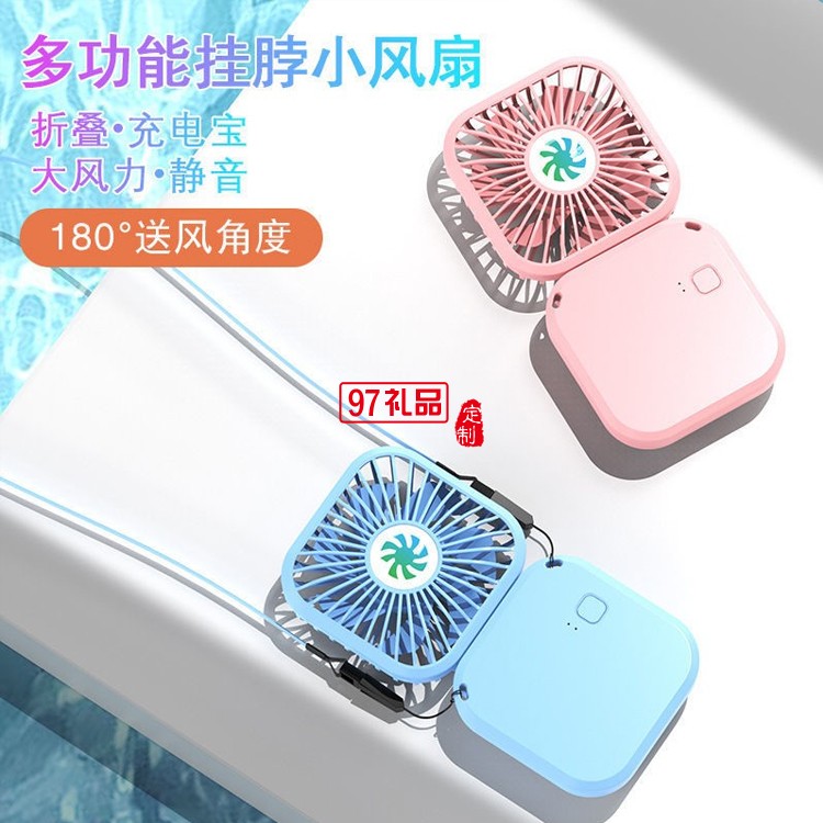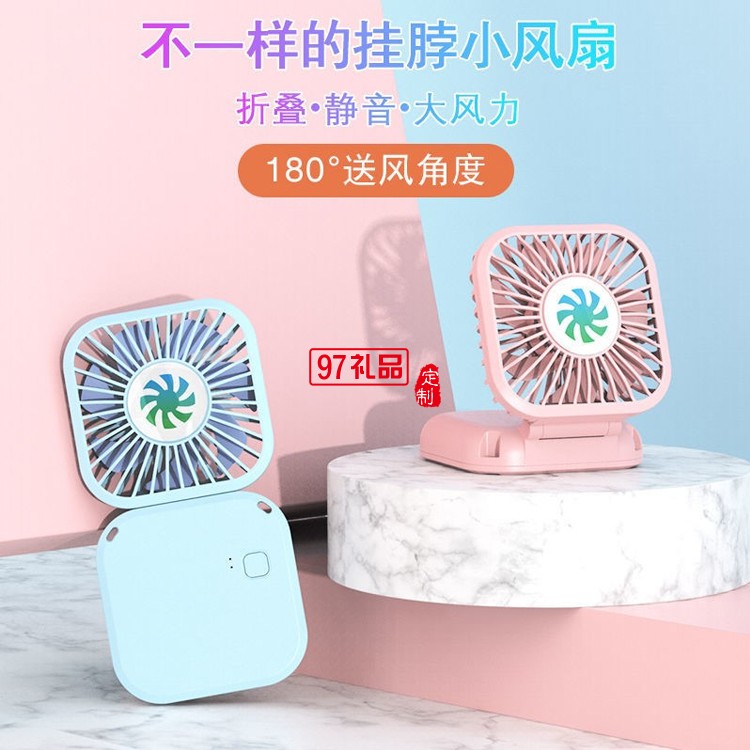 多功能小風扇可折疊手持掛脖學生桌面USB充電風扇定制公司廣告禮品