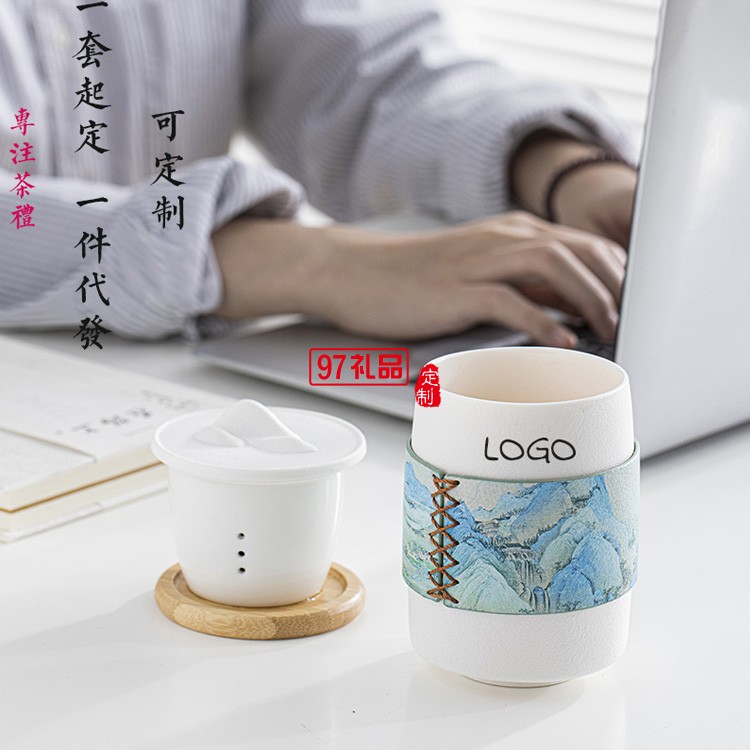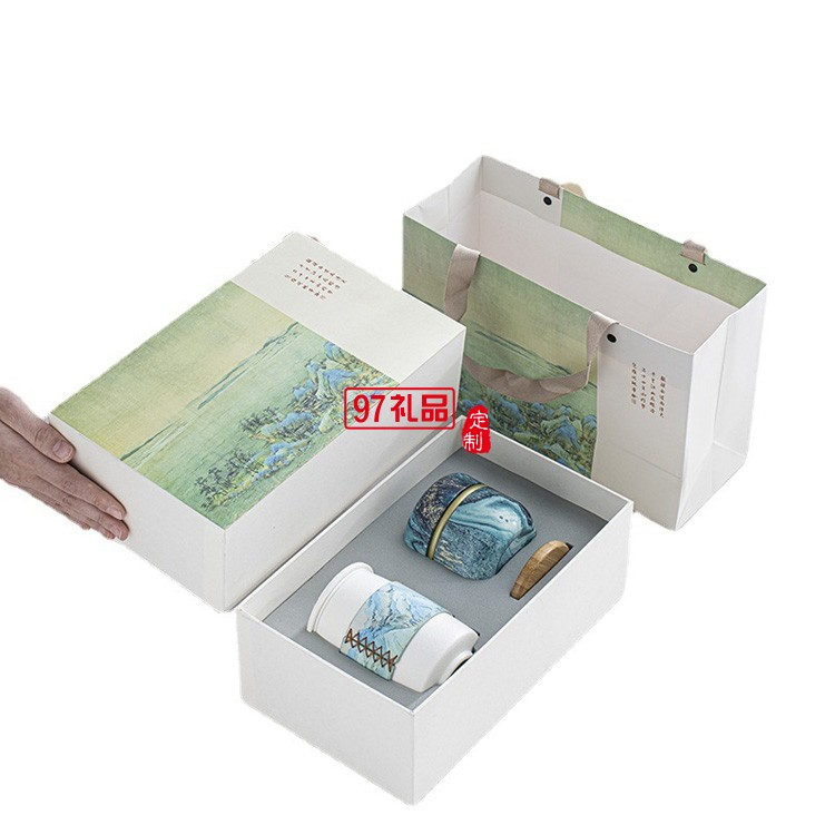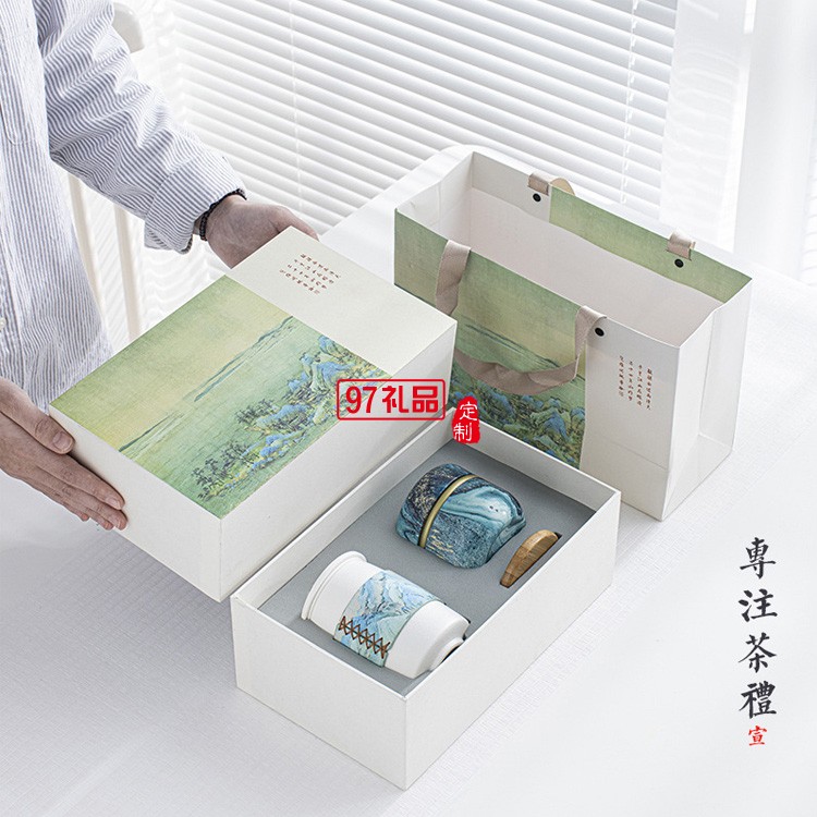 千里江山辦公室陶瓷茶杯套裝國潮禮盒裝個人杯禮品