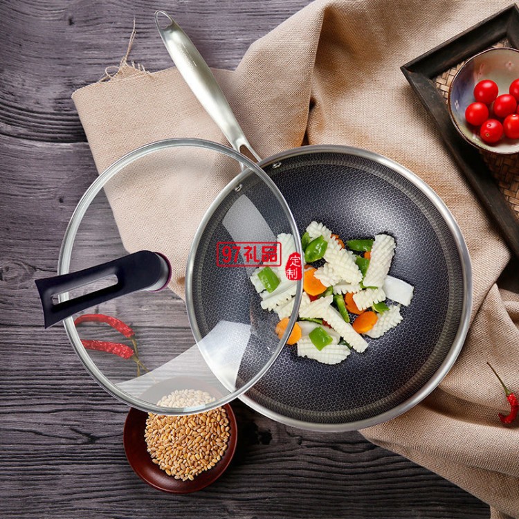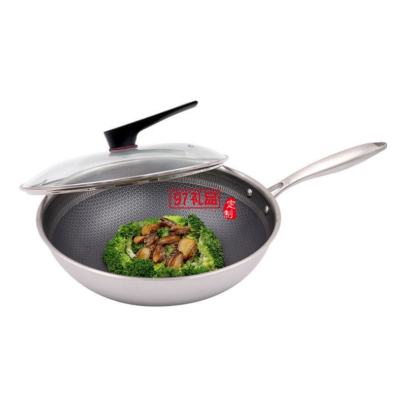 美國康寧CORNINGWARE蜂窩不銹鋼炒鍋不粘鍋32CM電磁爐通用