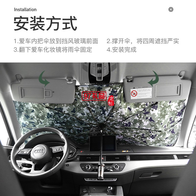 車載迷彩汽車遮陽傘防曬隔熱汽車遮陽擋 可定制LOGO