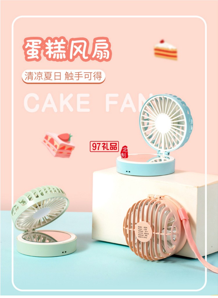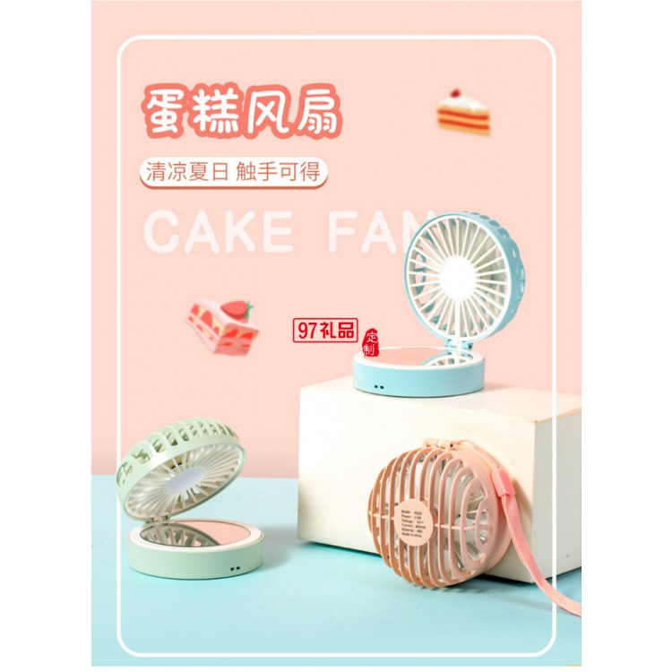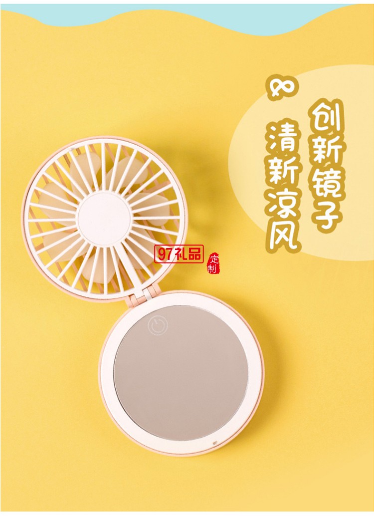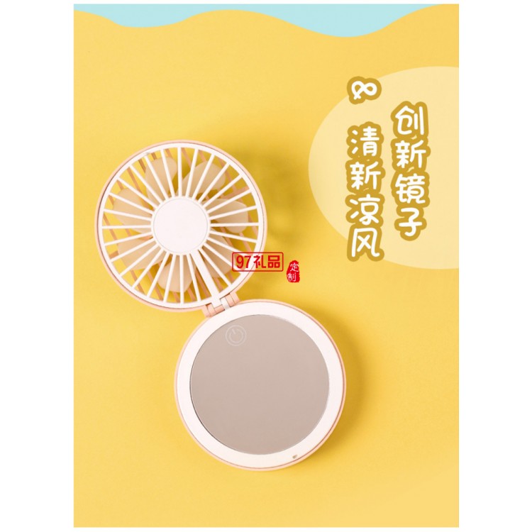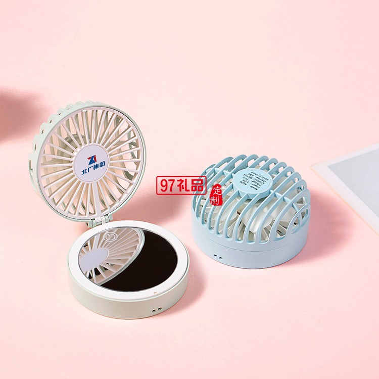 迷你折疊化妝鏡掛繩隨身便攜充電風扇