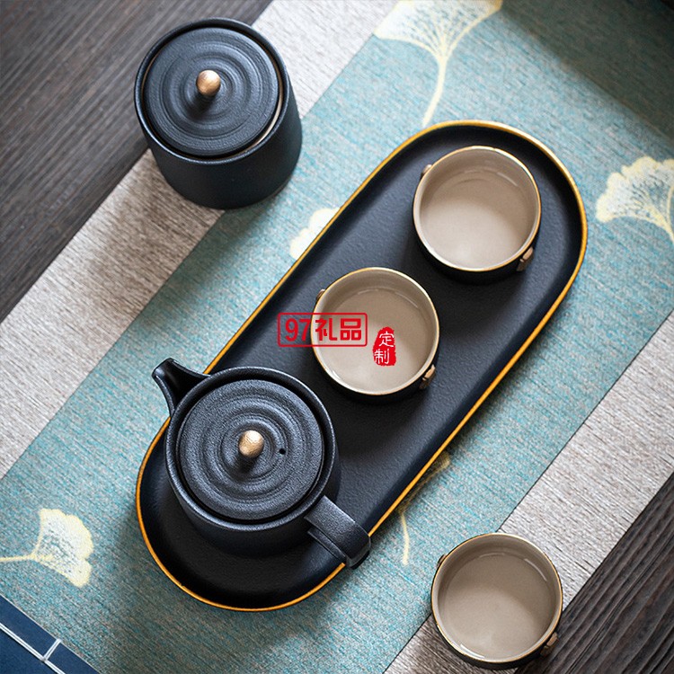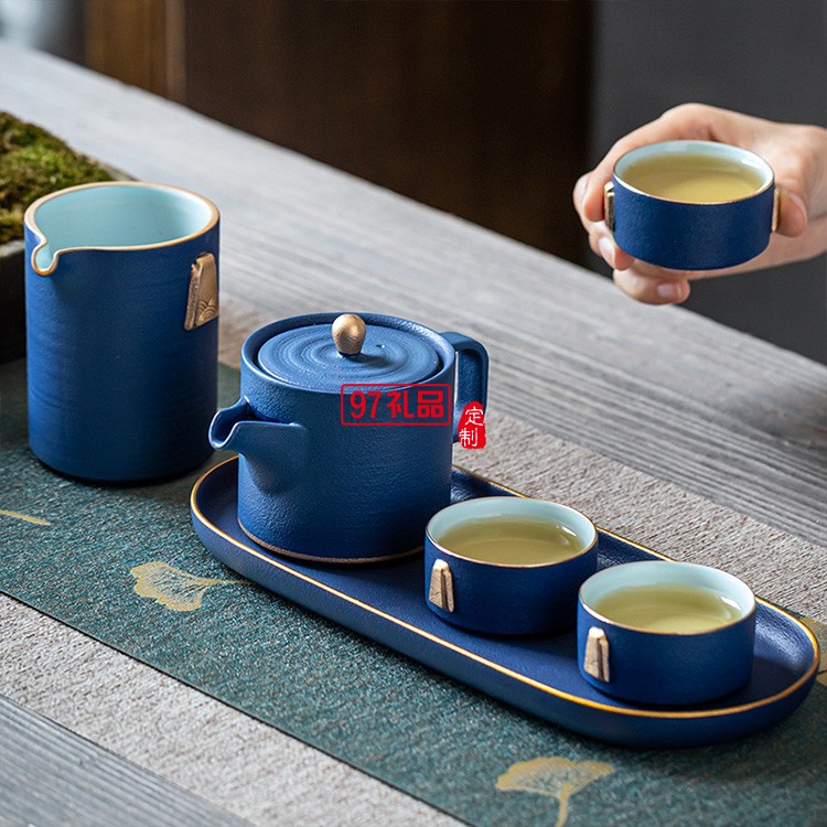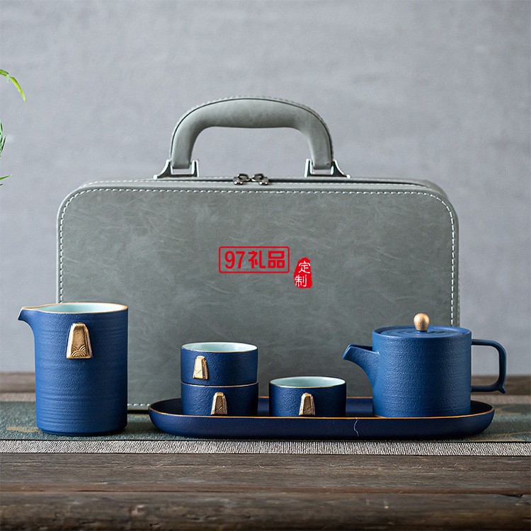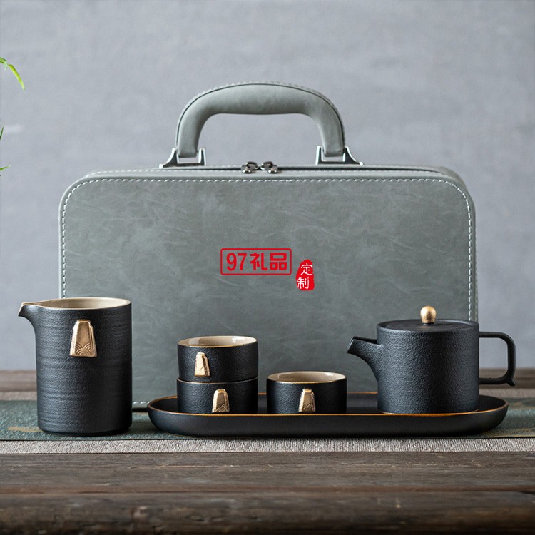 新品高檔描金茶具商務皮包茶具便攜泡茶茶具套裝 可定制logo