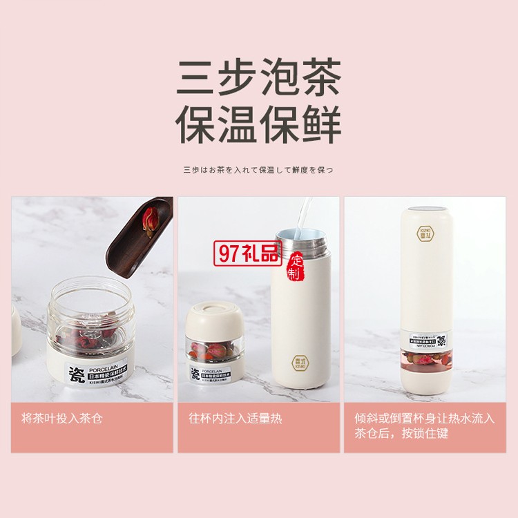 茶水分離水杯陶瓷內膽不銹鋼保溫杯KS20-WT021定制公司廣告禮品