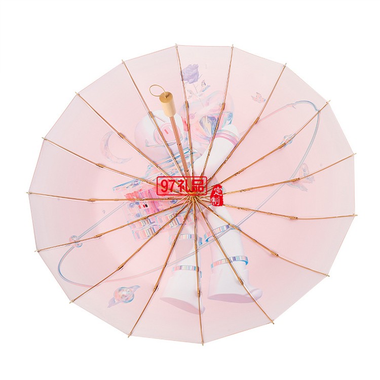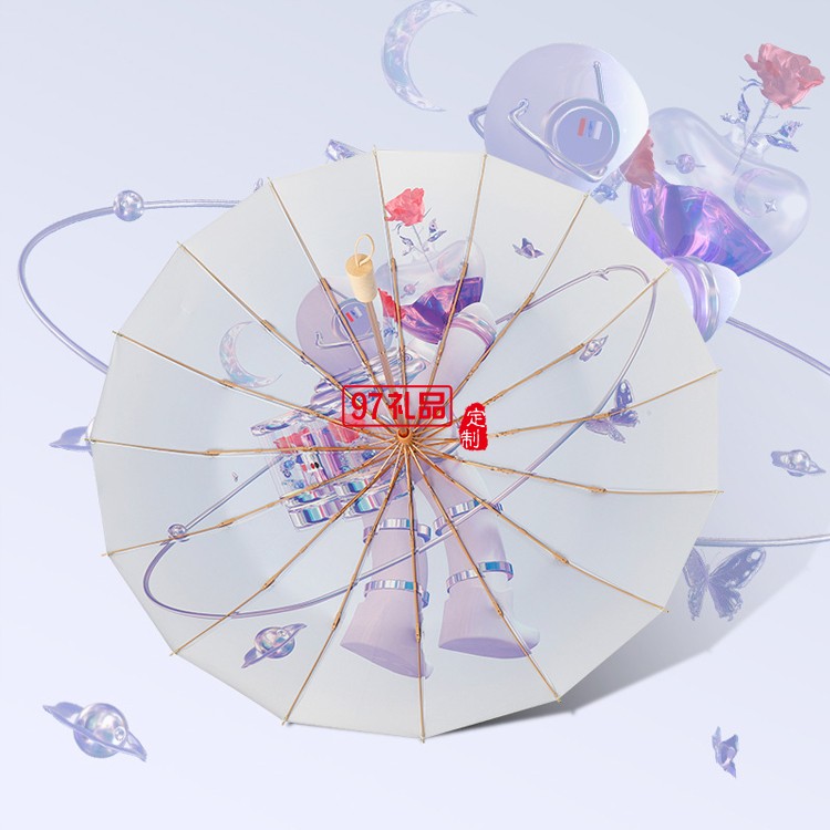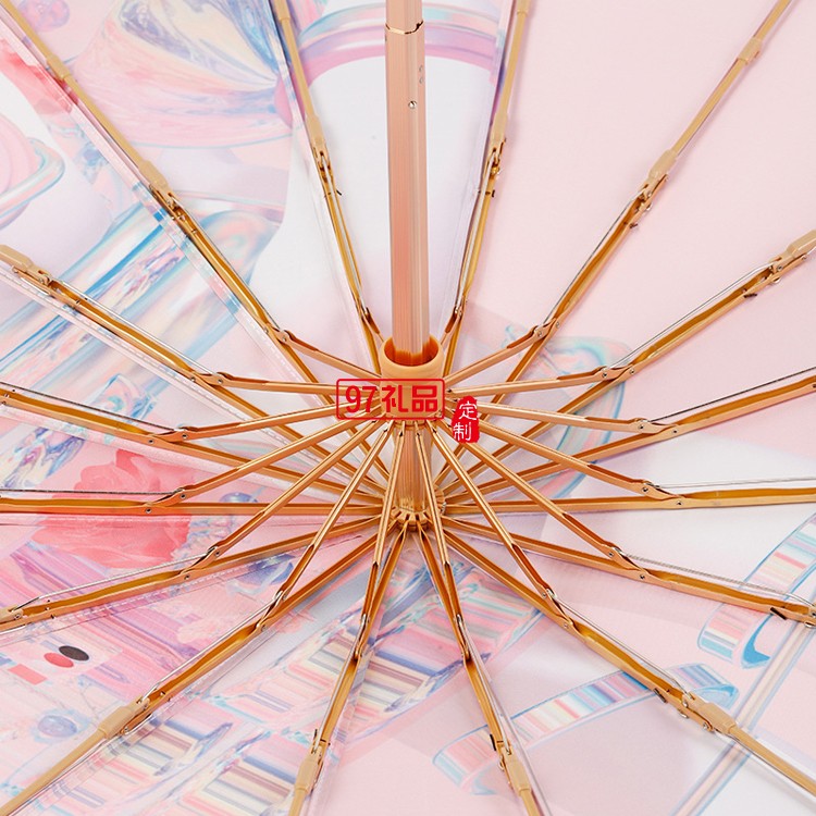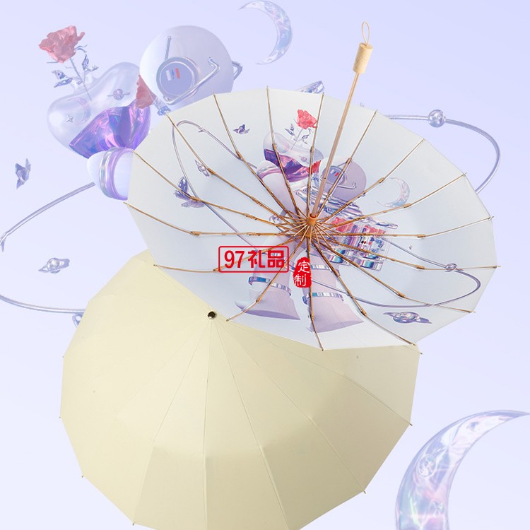 女神節三八送禮新款三折16骨手開彩膠晴雨傘實木手柄遮陽傘