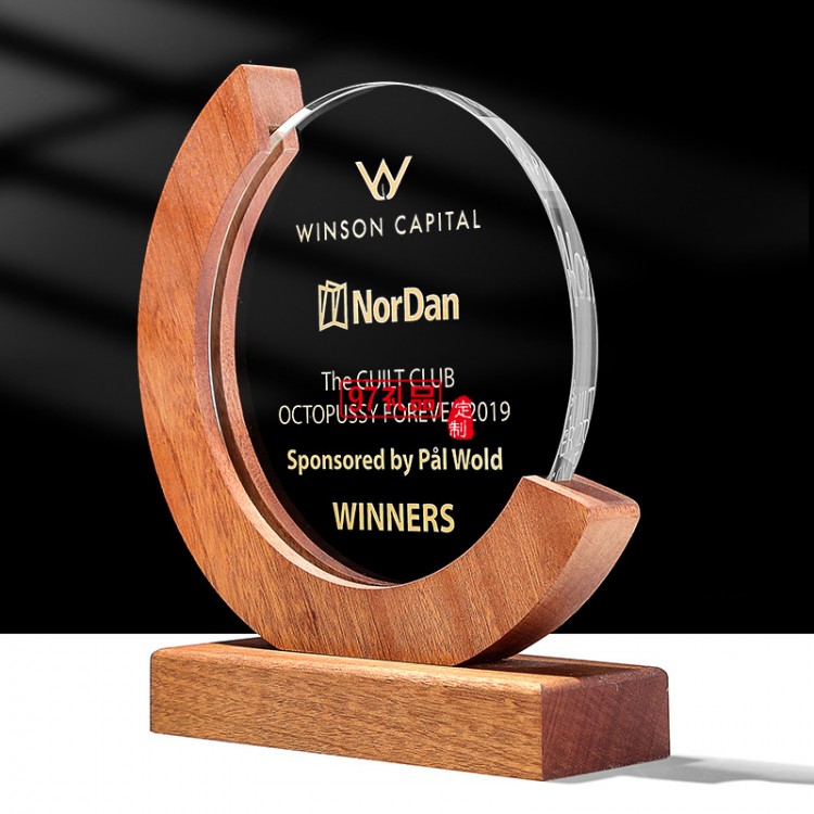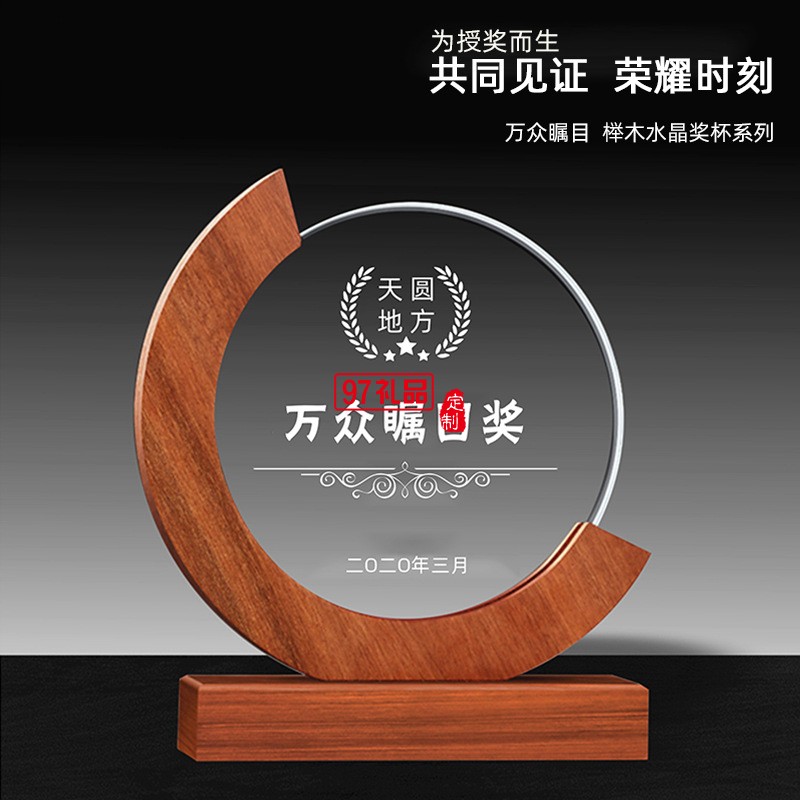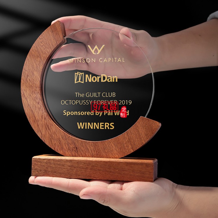 木質獎牌 優秀員工比賽頒獎紀念水晶獎杯擺件