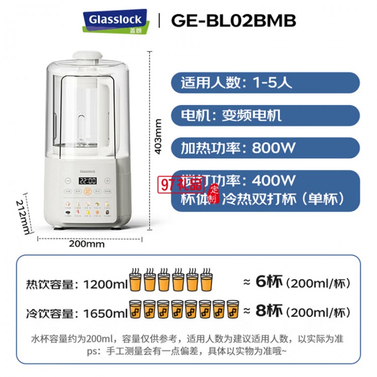 GLASSLOCK破壁機智頻變速輕音降噪全自動豆漿機榨汁機料理機