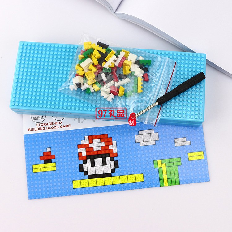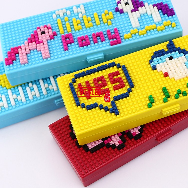創(chuàng)意兒童拼裝卡通塑料積木文具盒 DIY學(xué)生鉛筆盒