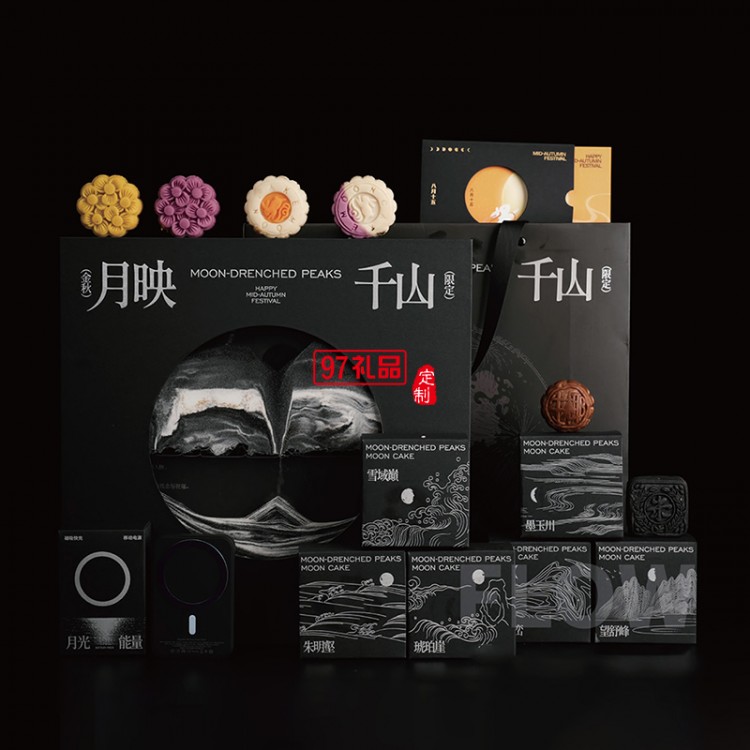 月映千山流沙畫禮盒套裝賀卡定制配移動電源