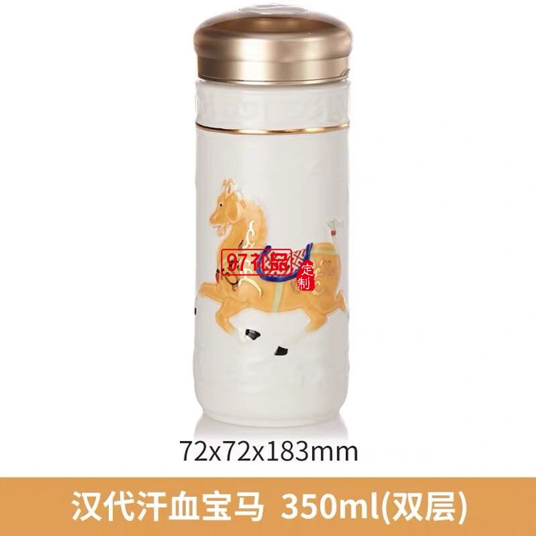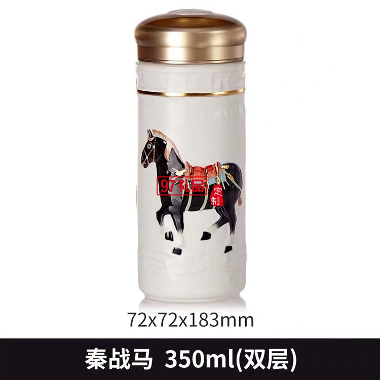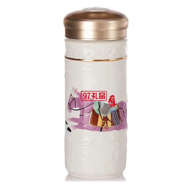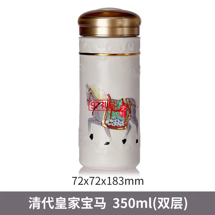 乾唐軒活瓷六朝代馬雙層350ml陶瓷杯水杯子復古鎏金彩繪隨手杯